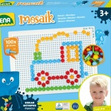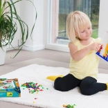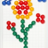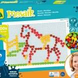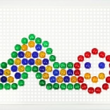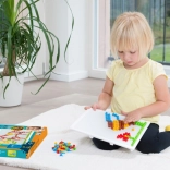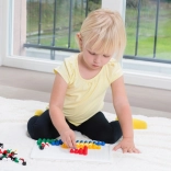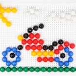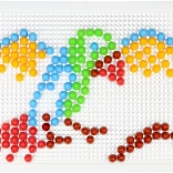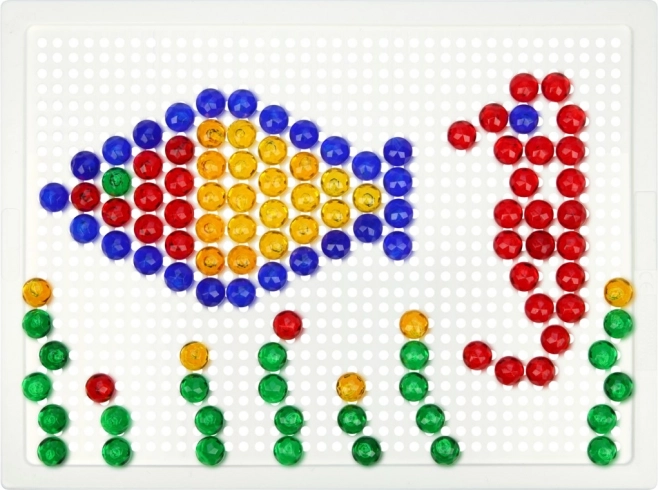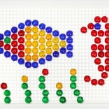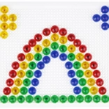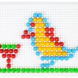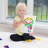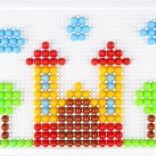 V balení nájdete pevnú plastovú mriežku s rozmermi 21 × 16 cm a 140 klobúčikov s priemerom 10 mm – akurát do detskej rúčky. Mozaika neobsahuje predlohy, a tak prirodzene podporuje voľnú kreativitu a samostatné vymýšľanie motívov.