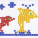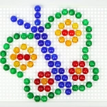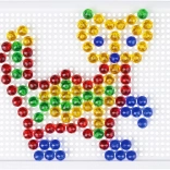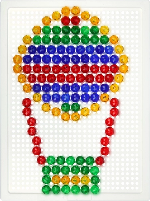 Táto kryštálová mozaika je ideálnou voľbou pre prvé kreatívne tvorenie. Vďaka priehľadným farebným klobúčikom vznikajú na bielej podložke výrazné a hravé obrázky. Deti si precvičia trpezlivosť, koordináciu oko–ruka a naučia sa rozpoznávať farby aj tvary.