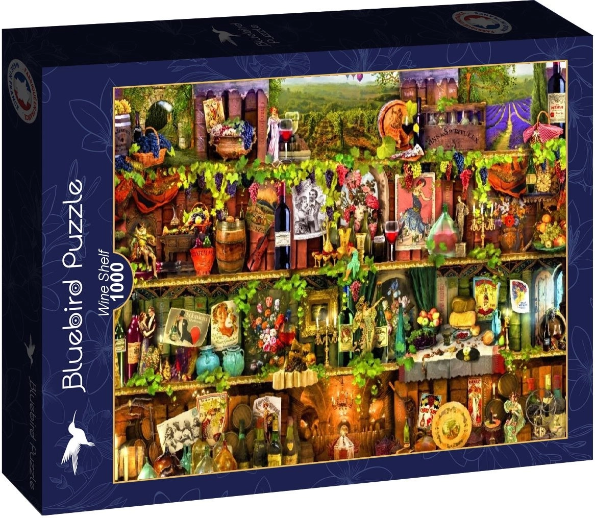 Užite si relax pri skladaní štýlového obrazu s motívom police a vína. Toto kvalitné puzzle s počtom 1000 dielikov od značky BLUEBIRD ponúka presné výrezy, jemnú povrchovú úpravu a hotový rozmer cca 69 × 47,8 cm – ideálne na rámovanie aj vystavenie.