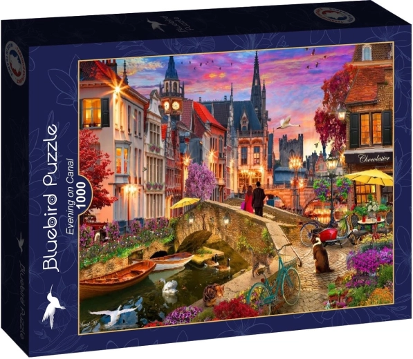 Preskúmajte detailnú ilustráciu romantického večera pri kanáli a doprajte si príjemnú oddychovú aktivitu. Puzzle z 1000 dielikov poteší začiatočníkov aj skúsených skladateľov a po zložení vytvorí dekoratívny obraz, ktorý vynikne v ráme.