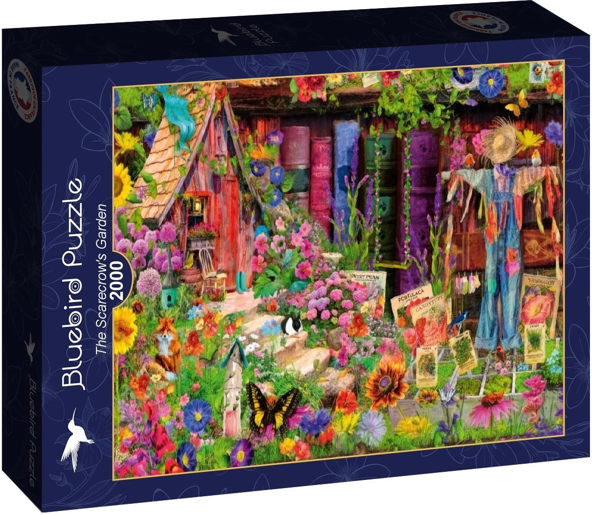 Bluebird puzzle Strašákova záhrada 2000 dielikov prináša detailnú a farebnú ilustráciu plnú atmosféry čarovnej záhrady. Vďaka kvalitnému spracovaniu a presným výrezom do seba dieliky skvele zapadajú a skladanie je plynulé a príjemné.