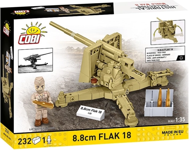Postavte si ikonické delo 8,8 cm Flak 18 v realistickej mierke 1:35. Stavebnica obsahuje 232 dielikov, detailné pohyblivé prvky (elevácia, 360° rotácia, sklopné podpery), minifigúrku delostrelca a zberateľské doplnky. Ideálne pre fanúšikov historických modelov, na vystavenie aj akčné hranie.