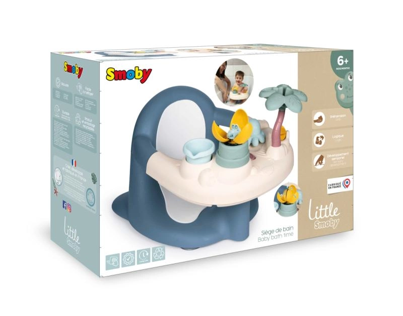 Súčasťou je interaktívny hrací pultík s 5 vodnými aktivitami, ktoré rozvíjajú zmysly a jemnú motoriku: vodný mlynček, pohárik na nalievanie, palmový rozprasovač, „čarovný“ kvet a chobotnica striekajúca vodu. Štyri silné prísavky pevne držia sedadlo na dne vane pre maximálnu stabilitu. Vyrobené vo Francúzsku.
