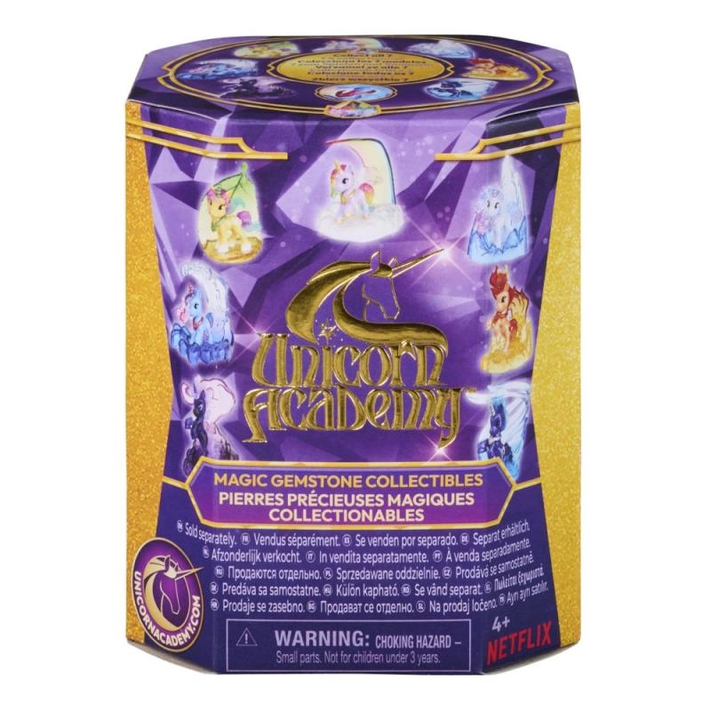 V každej tajuplnej škatuľke čaká jednorožec Magic Gemstone inšpirovaný hitmi z Netflixu a kníh – napríklad Wildstar, Leaf, River, Cinder, Glacier, Storm alebo špeciálny Grim, ktorý svieti v tme. Figúrky zaujmú precíznymi detailmi, lesklým vyhotovením a dekoratívnymi podstavcami s motívmi vody, ohňa, ľadu, oblakov, dúhy či listov.