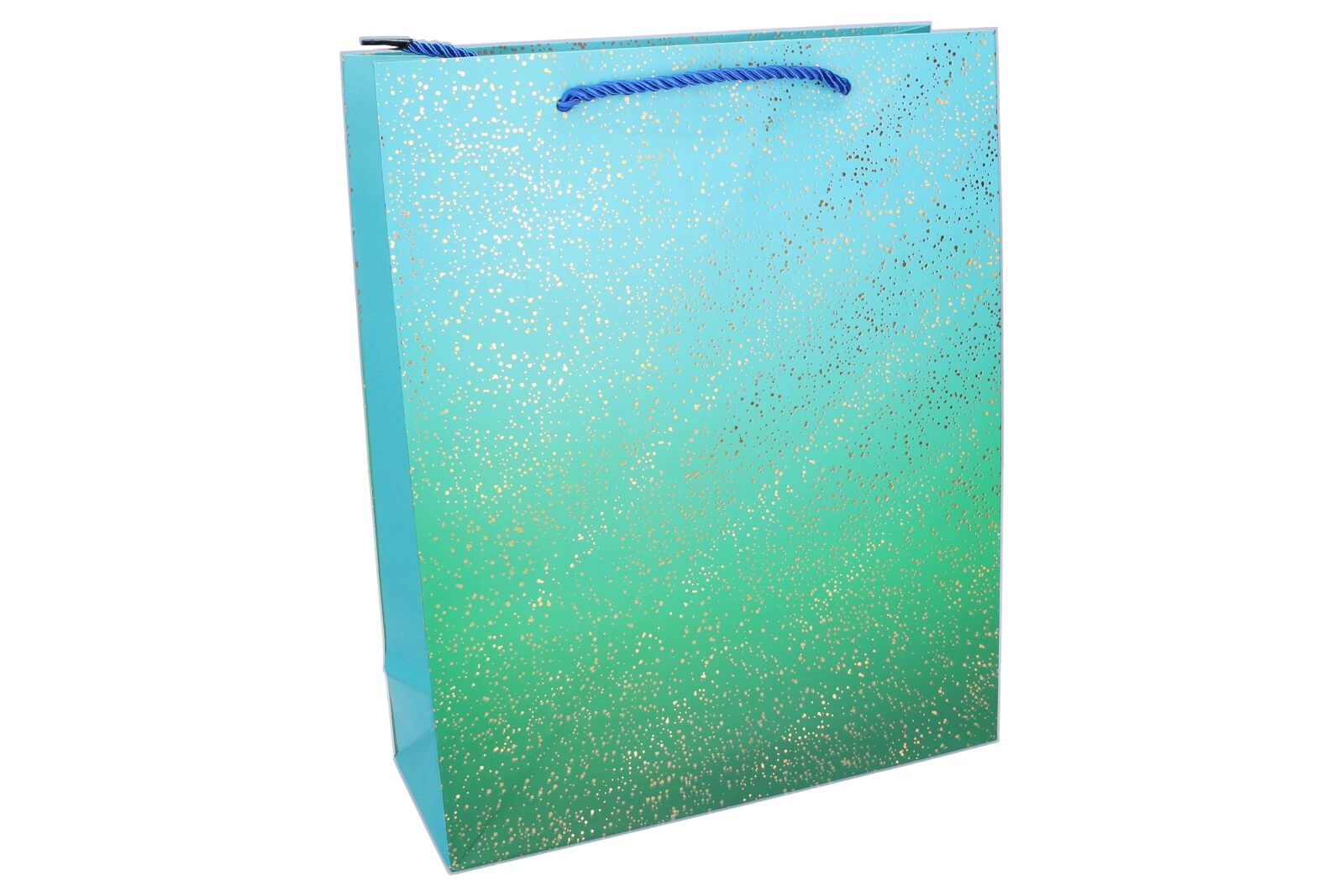 Taška je vyrobená z kvalitného papiera so vystuženými bokmi a dnom, takže si udrží tvar aj pri plnení. Mäkké šnúrkové uši sú príjemné do ruky a zaručujú bezpečné prenášanie. K dispozícii sú 4 farebné varianty s hladkým farebným prechodom – tyrkysovo zelená, modrá, ružovo‑fialová a žlto‑ružová.