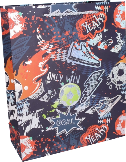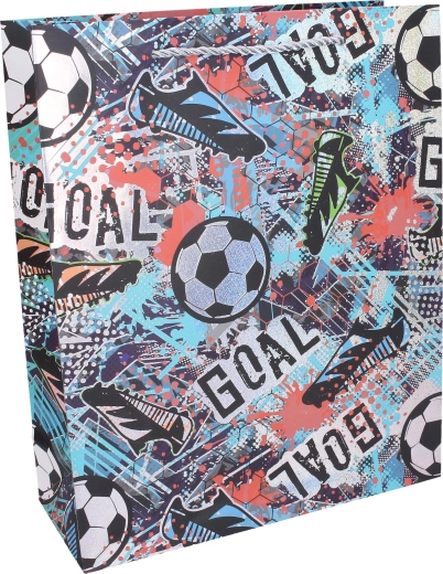 Dizajn zaujme výraznými farbami a športovou grafikou, ktorá sa hodí pre chlapcov aj dievčatá, ktoré milujú futbal. Taška je dodávaná v asortovaných farebných variantoch, takže každý darček bude vyzerať originálne a slávnostne.