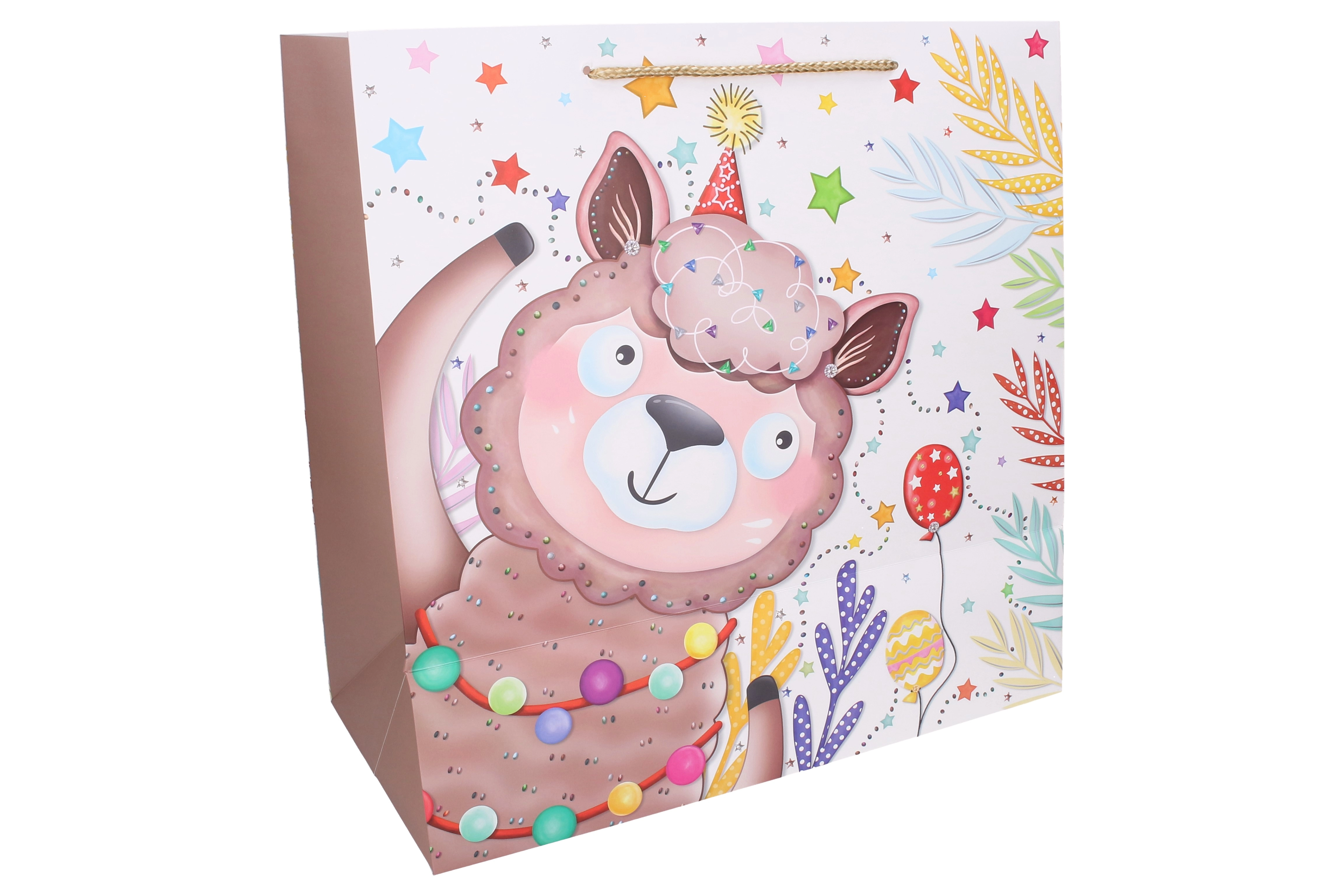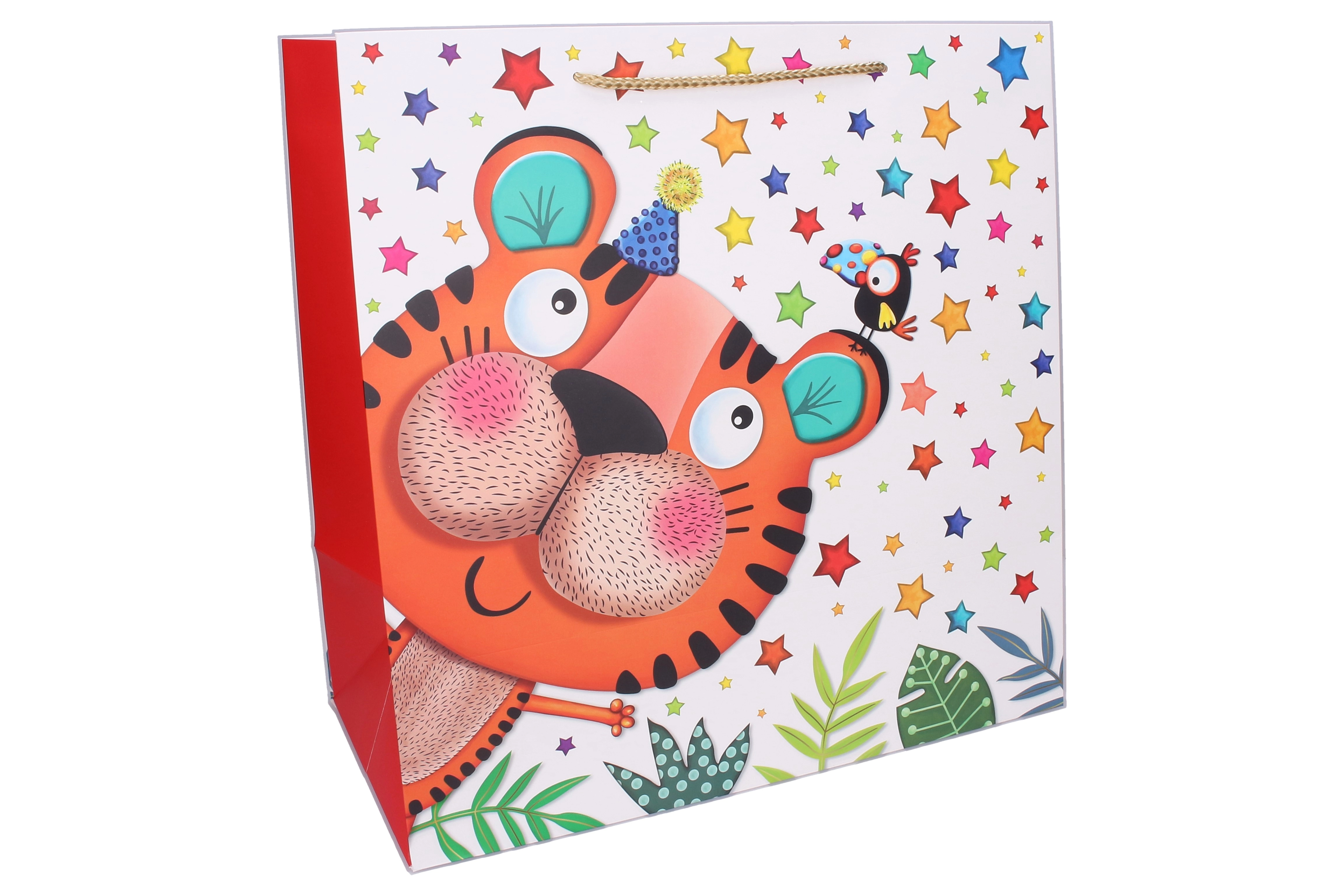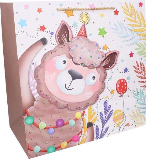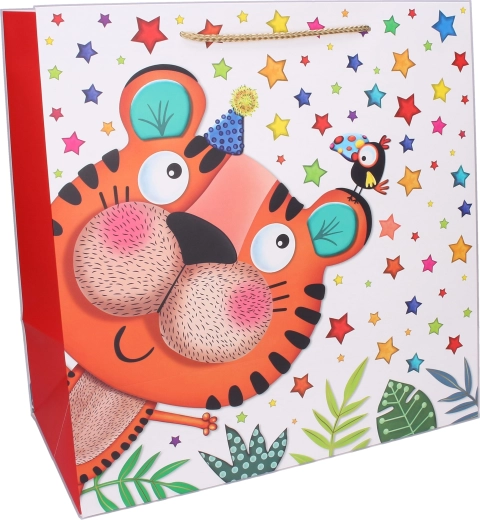 Štýlová a odolná darčeková taška pre deti s veselými motívmi zvieratiek premení každé odovzdávanie darčeka na malú oslavu. Vďaka skutočne veľkému formátu pohodlne pojme aj rozmerné a nepravidelné predmety, zatiaľ čo pevné šnúrkové ucho zaistí bezpečné nosenie.