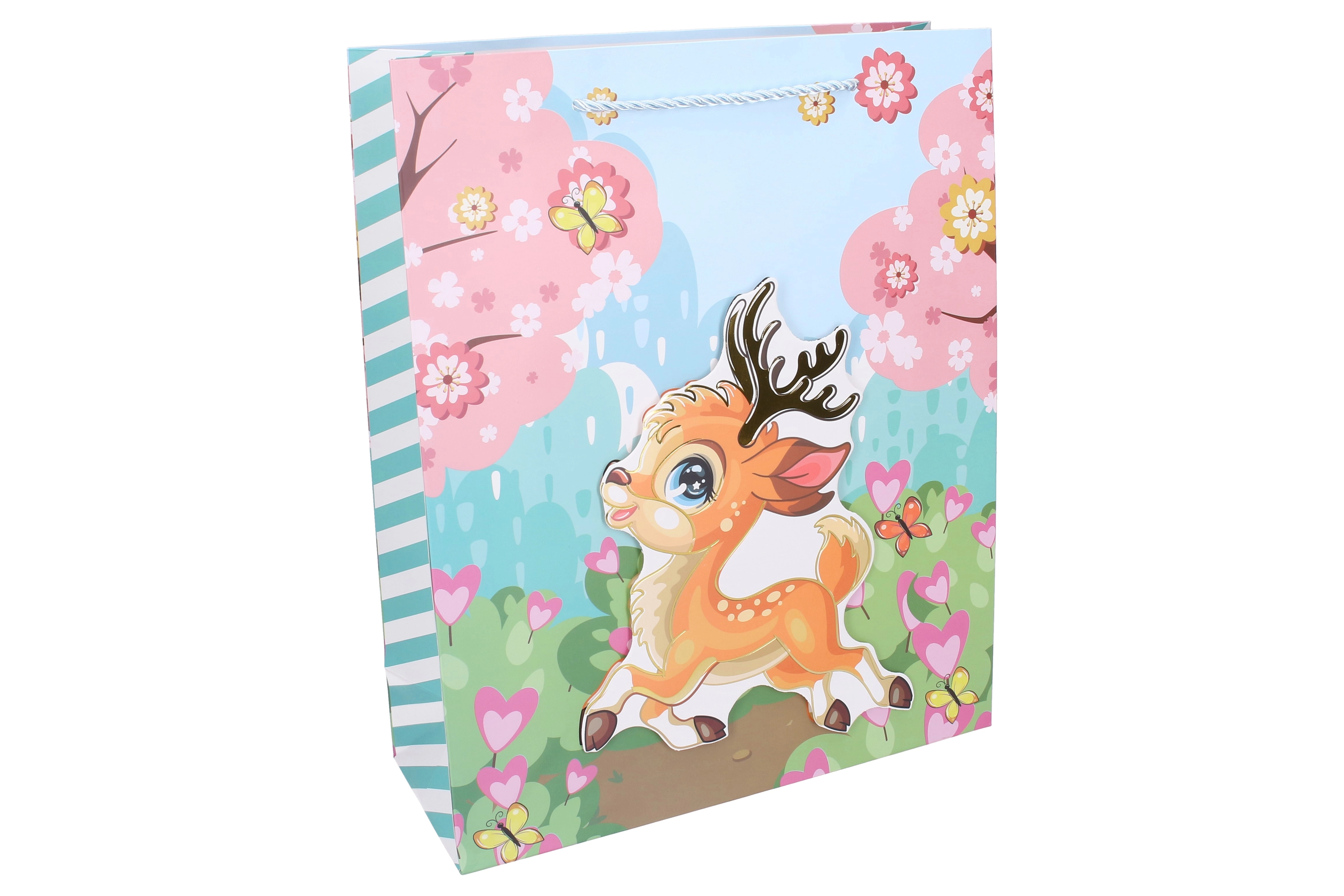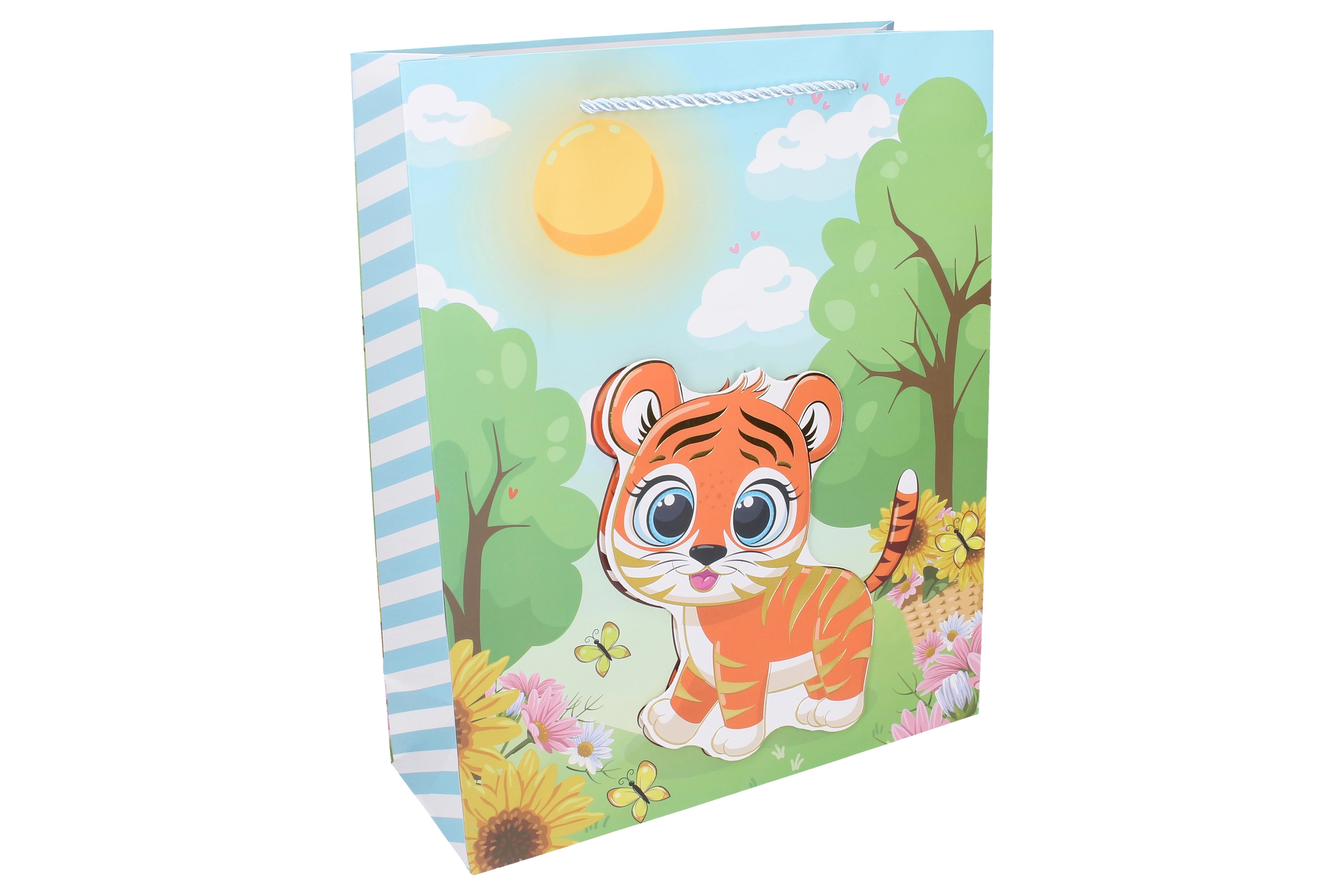 Táto detská darčeková taška vo veľkosti M (26 × 32 × 10 cm) je skvelou voľbou na rýchle a efektné zabalenie darčekov. S motívmi obľúbených zvieratiek poteší deti aj rodičov a vďaka pevnému materiálu bezpečne unesie hračky, knižky či kreatívne sady.