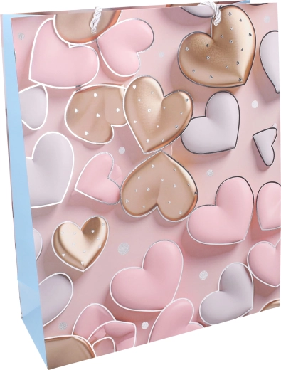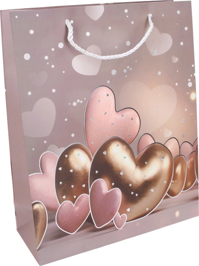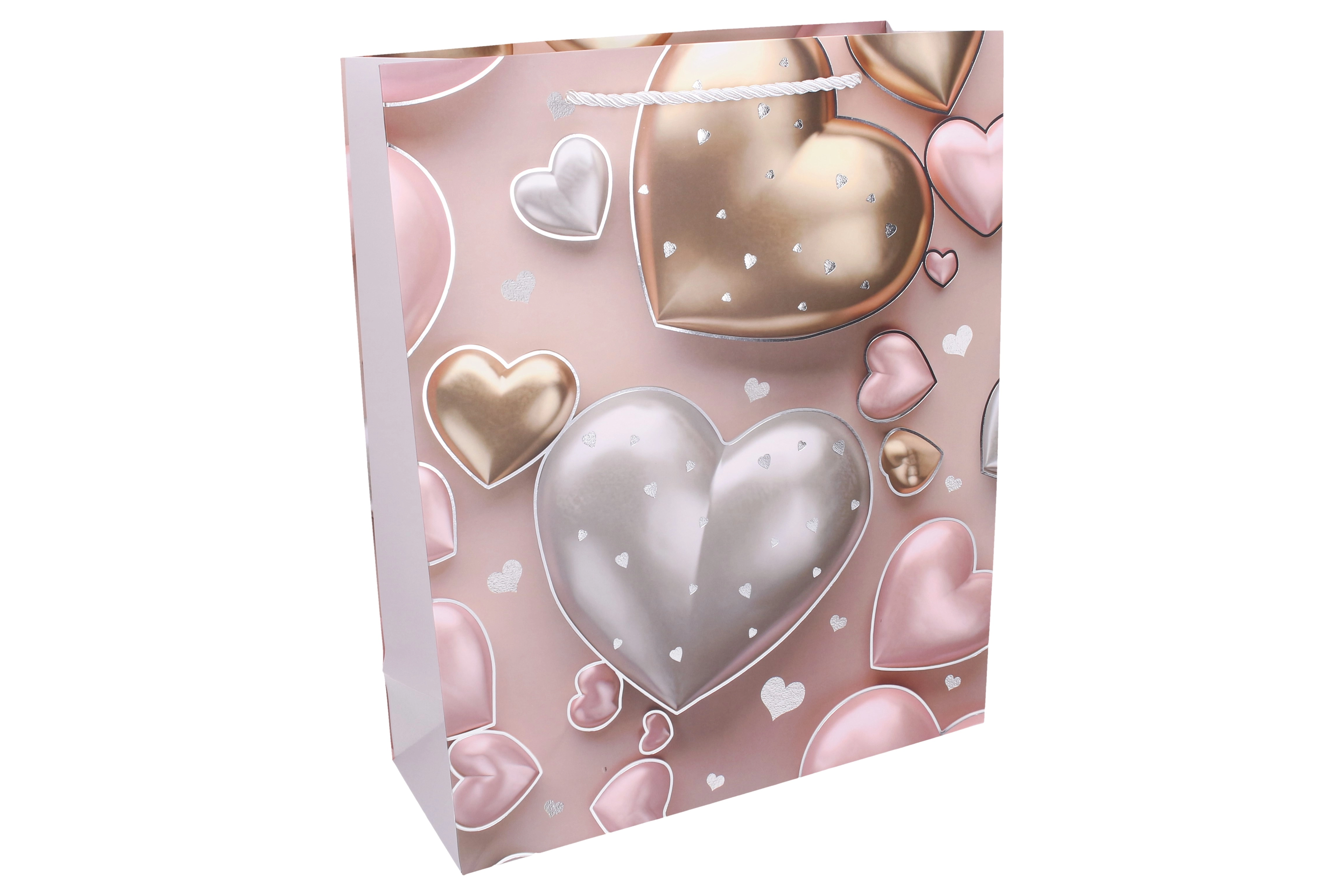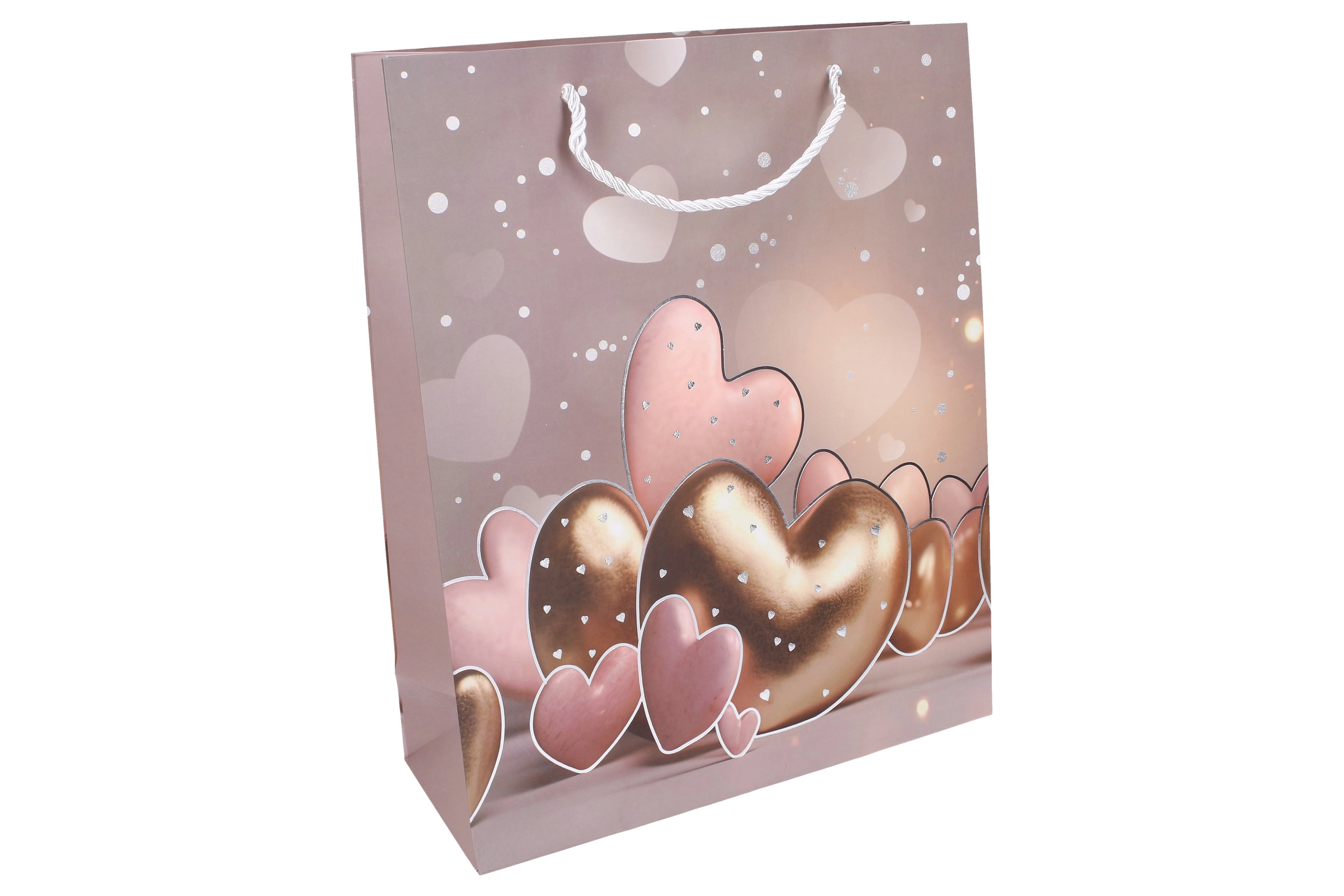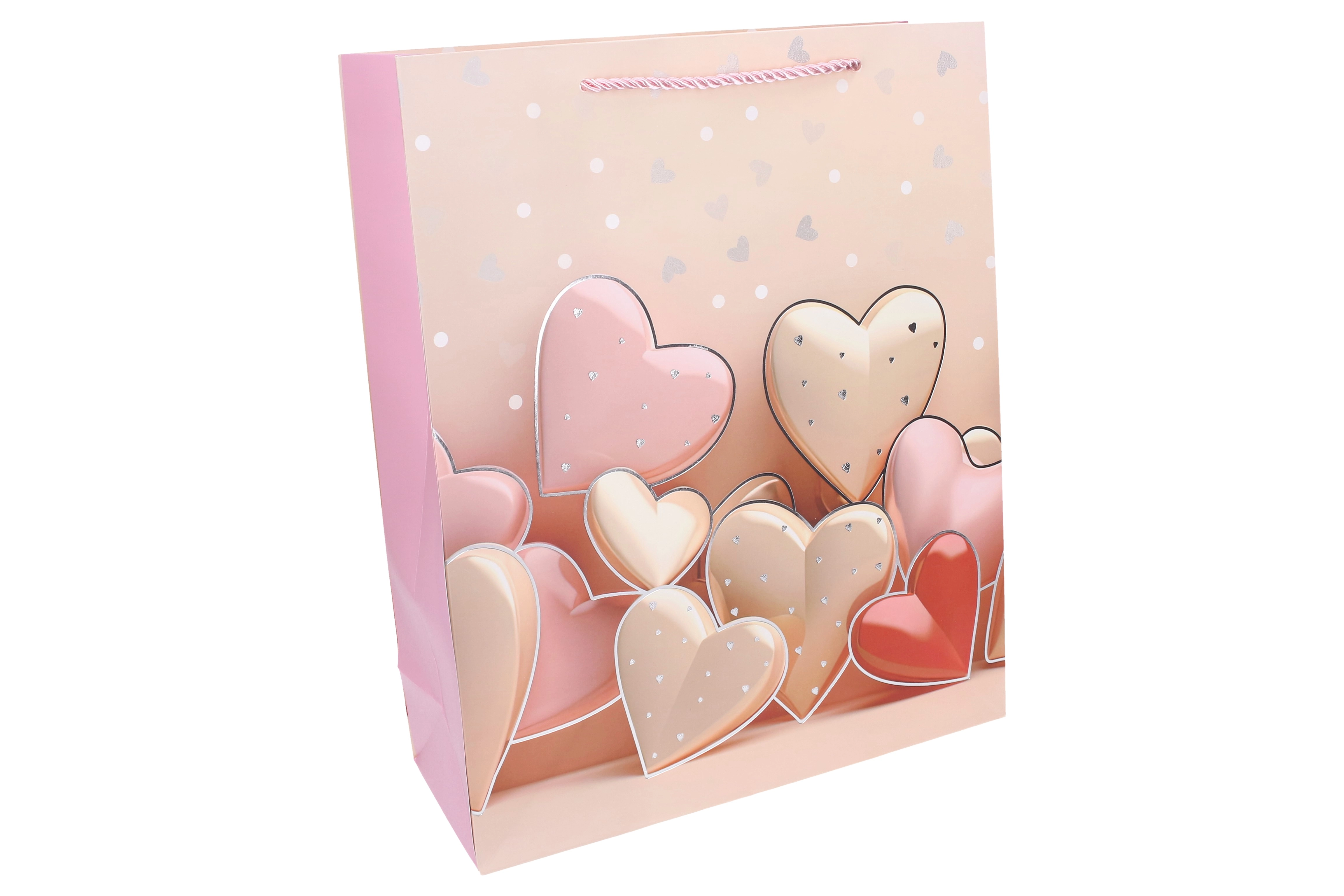 Štýlová darčeková taška vo veľkosti L s rozmermi 30 × 41,5 × 12 cm je ideálna na balenie darčekov pri akejkoľvek príležitosti. Ponúka celoročný motív so srdcom, pevné prevedenie a štyri farebné varianty na zladenie s darčekom.