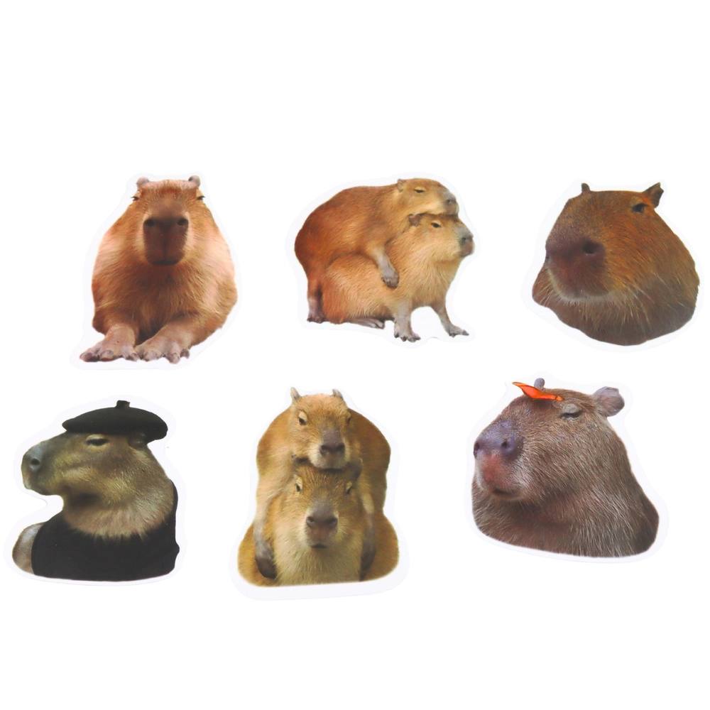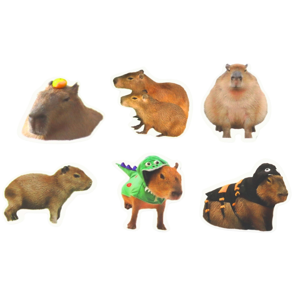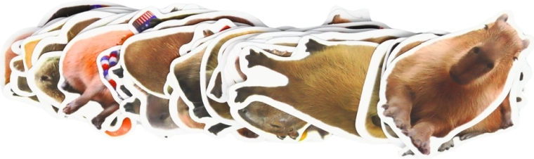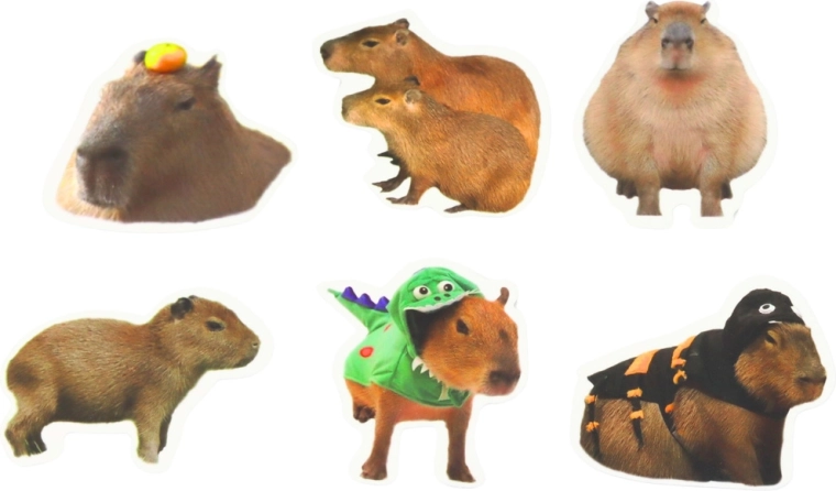 Každá nálepka vychádza z reálnych podôb kapybar – prírodné odtiene, rôzne pózy a detailné spracovanie pre autentický dojem na každom projekte.