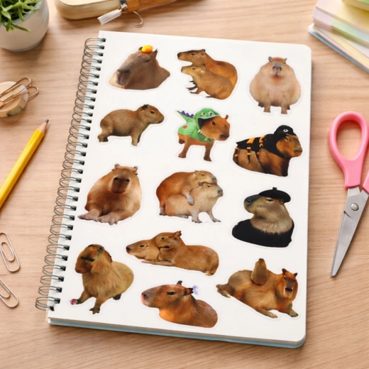 Objavte zábavnú sadu papierových nálepiek s motívom kapybar v realistickom prevedení. Ideálne pre deti, študentov aj kreatívne duše na zdobenie zošitov, diárov, laptopov či scrapbookov. Každá nálepka má približne 6–7 cm, takže je dobre viditeľná, ľahko sa lepí a skvele drží na hladkých povrchoch. V balení je približne 50 kusov s prírodnými farbami a rôznymi pózami kapybar – perfektné na dekoráciu, kreatívne projekty aj edukačné aktivity.