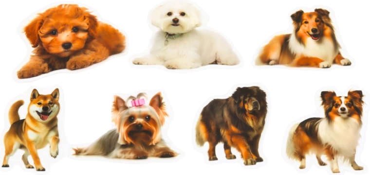 Realistické, farebné potlače psích plemien dodajú dekoráciám profesionálny a atraktívny vzhľad.