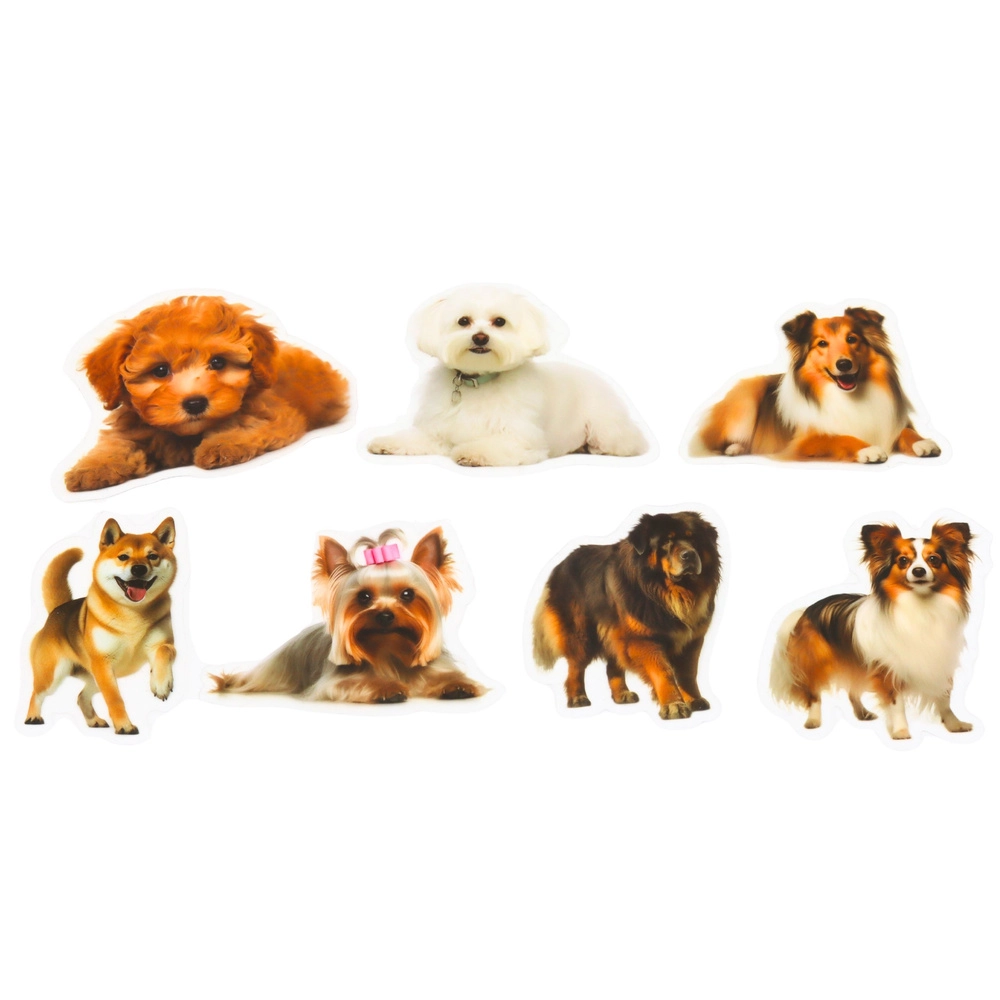 Táto bohatá sada ponúka rôzne plemená a roztomilé psie pózy, ktoré oživia každý projekt. Vďaka priehľadnému okraju vynikne samotný motív psa a výsledný vzhľad je čistý a moderný. Nálepky sa ľahko aplikujú a dobre držia na hladkých povrchoch.