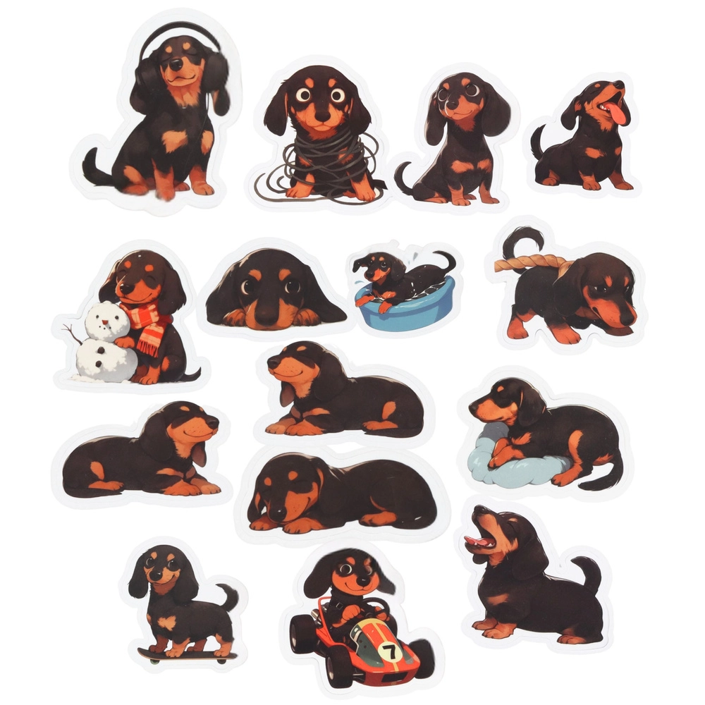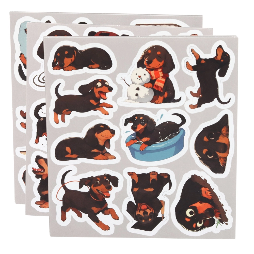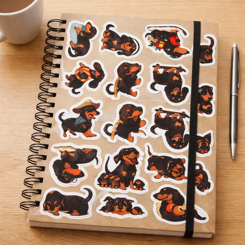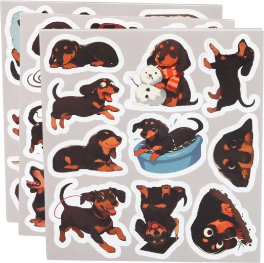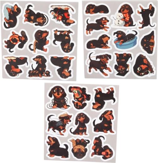 Roztomilá sada nálepiek s motívom jazvečíkov prináša 54 rôznych dizajnov na zdobenie zošitov, denníkov, plánovačov či darčekov. Každá nálepka zobrazuje jazvečíka v inej póze, vďaka čomu ľahko vytvoríte originálne kompozície. Nálepky sú ľahko odlepiteľné a priľnavé, majú praktickú veľkosť cca 5–6 cm a skvele držia na hladkých povrchoch.