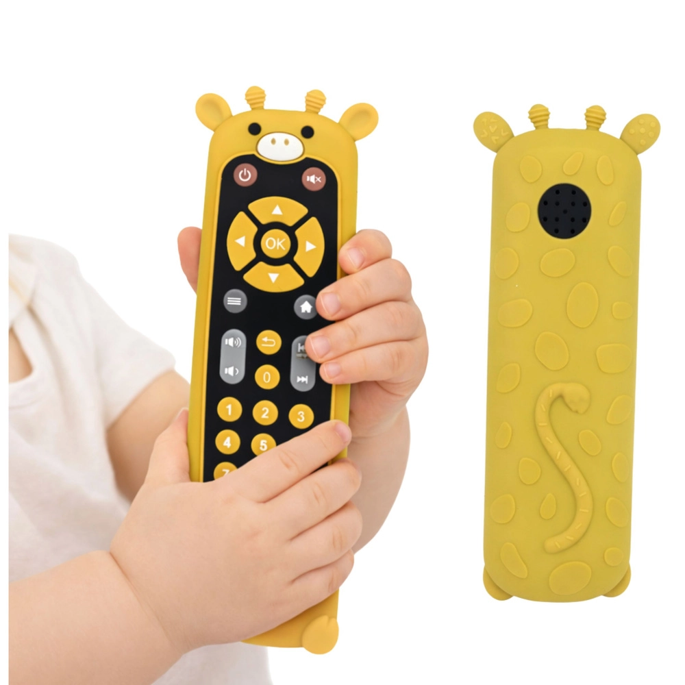 Roztomilý interaktívny ovládač v tvare žirafy je ideálny pre bábätká od 6 mesiacov. Ponúka svetelné efekty, melódie a zvuky, učenie čísel a slov v 3 jazykoch (EN/FR/ES) a má mäkké silikónové hryzátko na úľavu pri prerezávaní zúbkov. Bezpečné materiály ABS + silikón, BPA free, zaoblené hrany a odolné potlače podporujú zmyslový rozvoj a koordináciu ruka–oko.