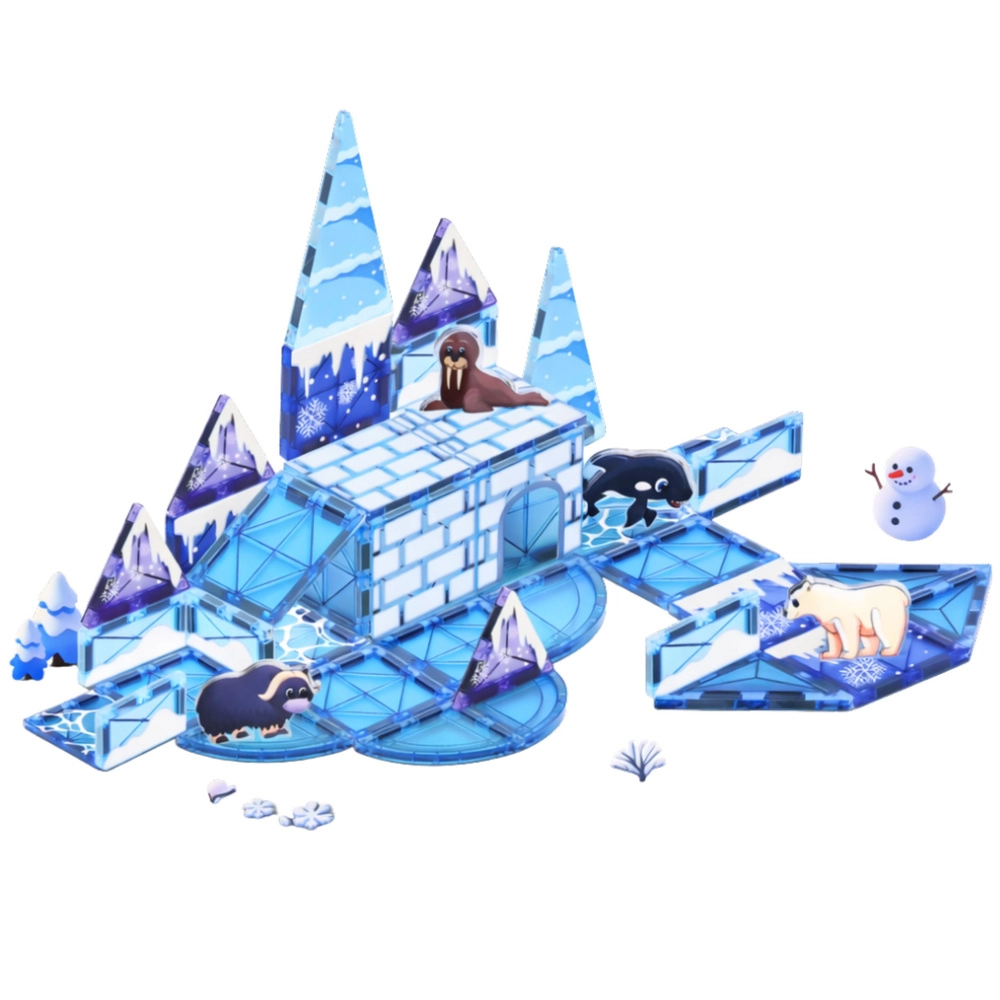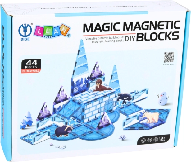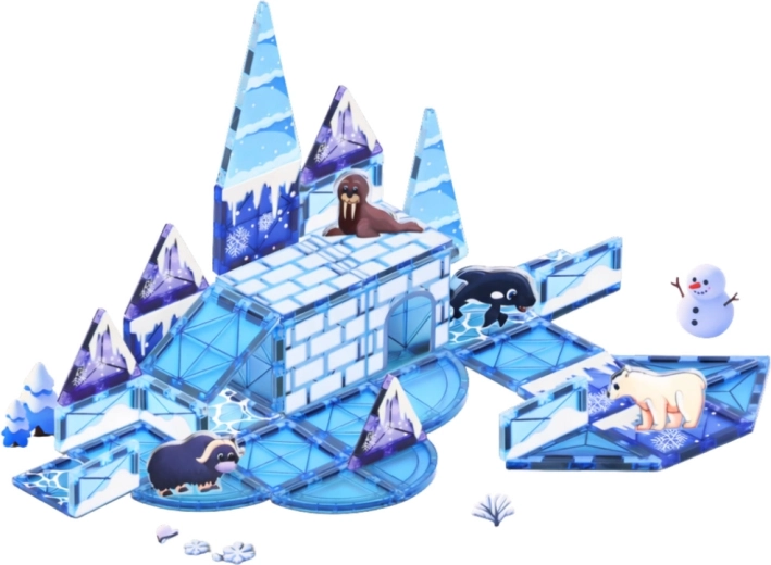 Objavte kreatívny svet Arktídy s magnetickou stavebnicou o 44 dielikoch. Priehľadné modré panely sa ľahko spoja vďaka silným magnetom a deti si postavia ľadové zámky, mosty aj rampy. Súčasťou sú figúrky polárnych zvierat, ktoré podporia fantáziu, jemnú motoriku a priestorové myslenie.