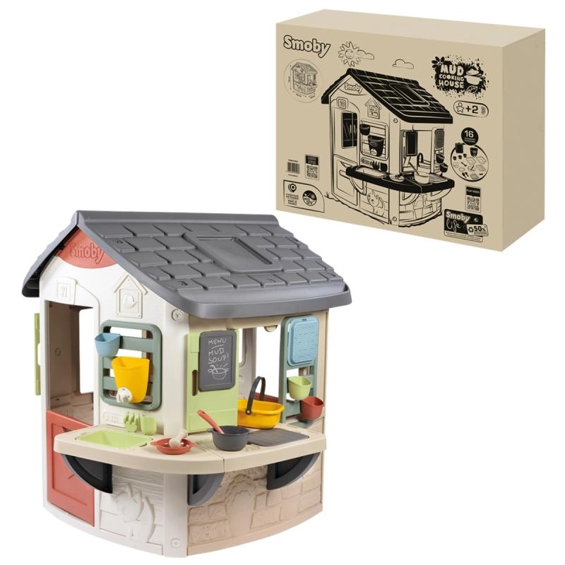 Detský domček SMOBY Life Mud Cooking je ideálnou voľbou do záhrady aj na terasu. Poskytuje dostatok priestoru na spoločnú hru a rozvoj fantázie – od varenia v blatovej kuchynke až po obsluhu pri výdajnom okienku. Premyslené detaily a bohaté príslušenstvo udržia deti dlhodobo zabavené.