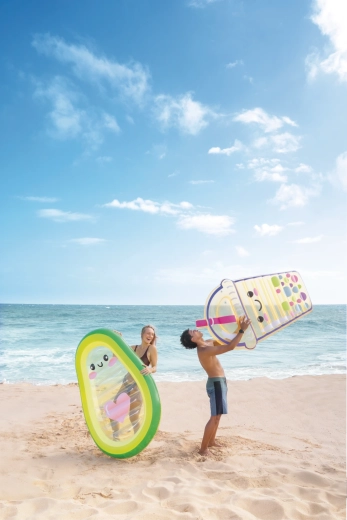 Užite si leto naplno s hravým ležadlom v tvare avokáda, ktoré zaujme priehľadným stredom s rozkošnou tváričkou a ružovým srdcom. Je vyrobené z odolného PVC, má dva ventily na rýchle nafúknutie a vyfúknutie a ponúka pohodlné ležanie aj stabilitu na vode. Ideálne do bazéna, na pláž aj na dovolenku – pre dospelých aj staršie deti. Vyskúšajte spojenie štýlového dizajnu, pohodlia a zábavy vo vode.