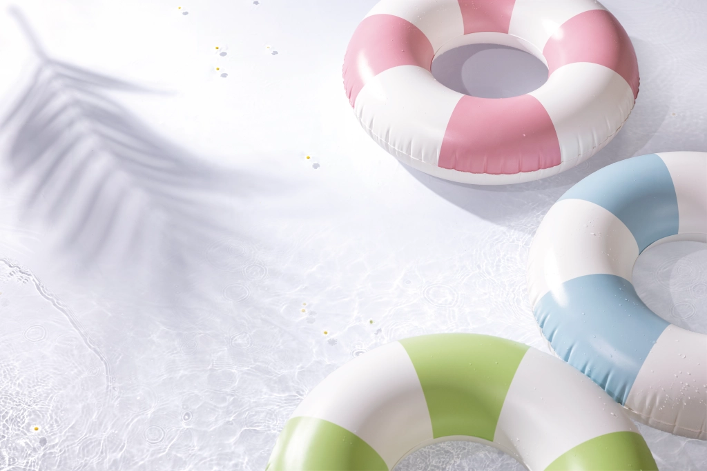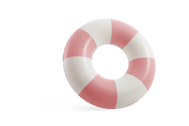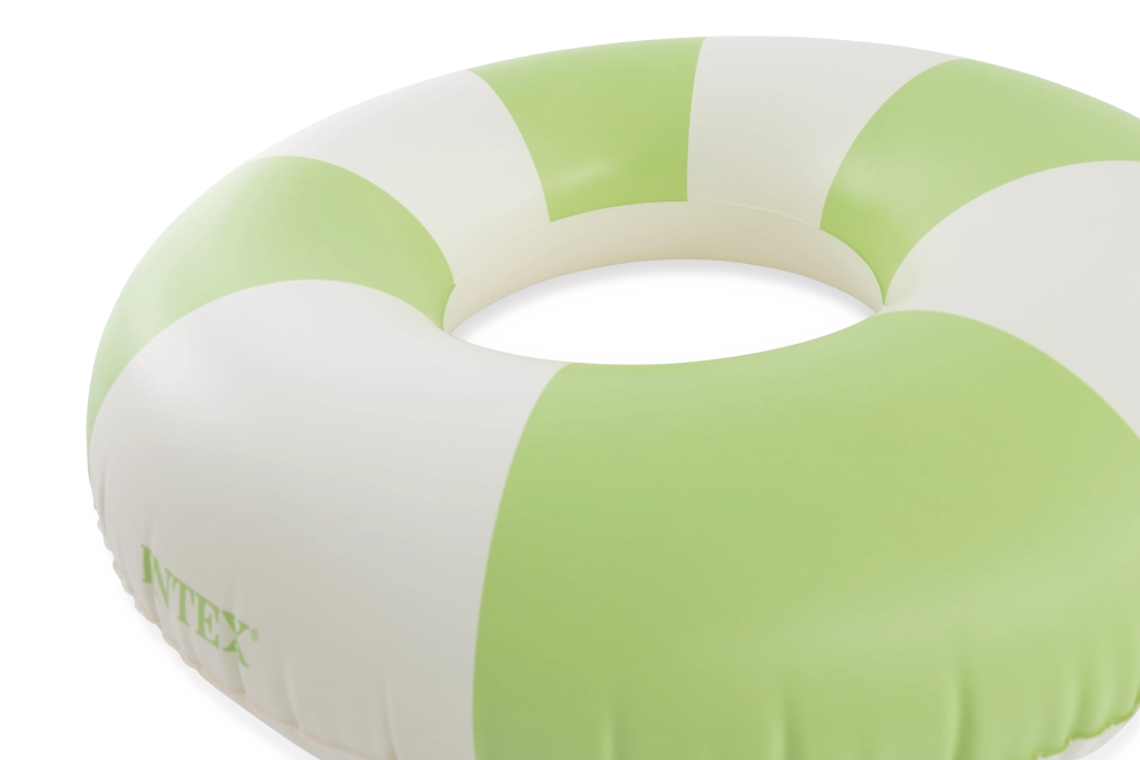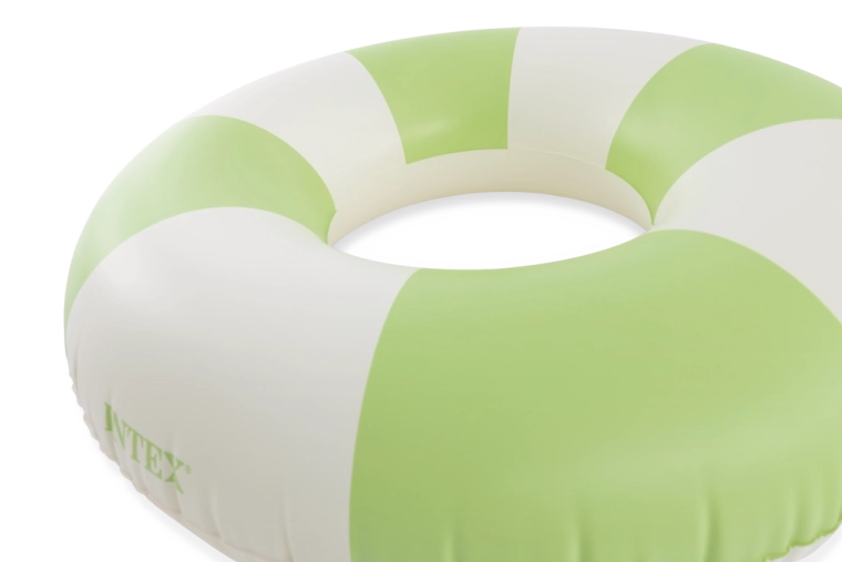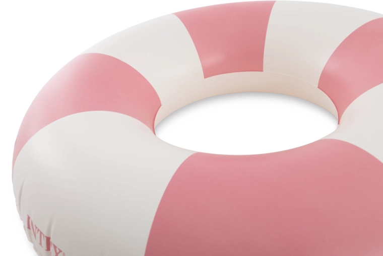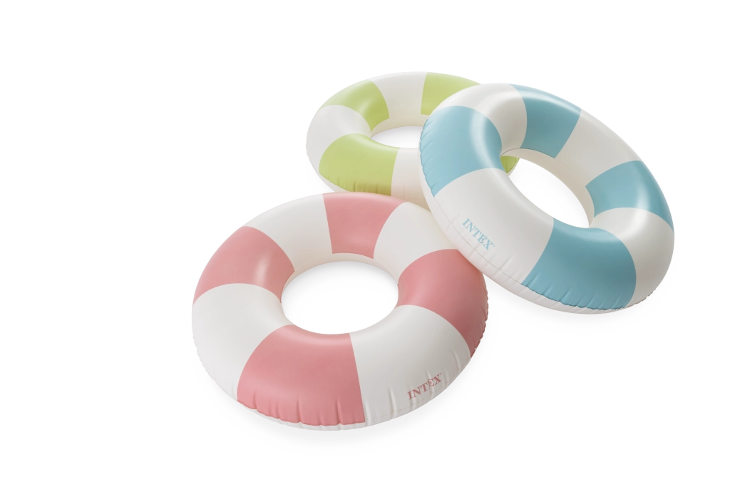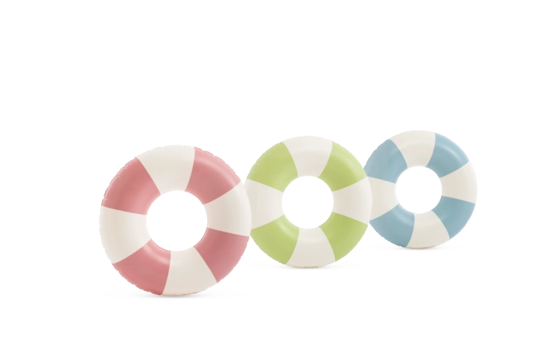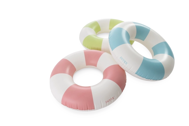 Trendy kombinácia ružovej, modrej a zelenej s bielymi segmentmi nielen skvele vyzerá, ale tiež zvyšuje viditeľnosť kruhu vo vode.