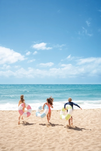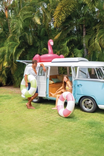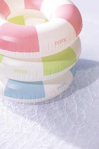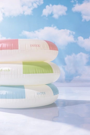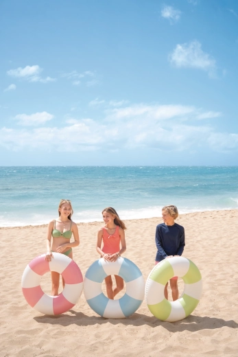 Nafukovací kruh Coastal Cabana kombinuje svieži dizajn v pastelových tónoch modrej, zelenej a ružovej s praktickými funkciami pre bezpečné a pohodlné vodné radovánky. Vďaka priemeru 91 cm poskytuje dostatok priestoru a pohodlia do bazéna aj k moru.