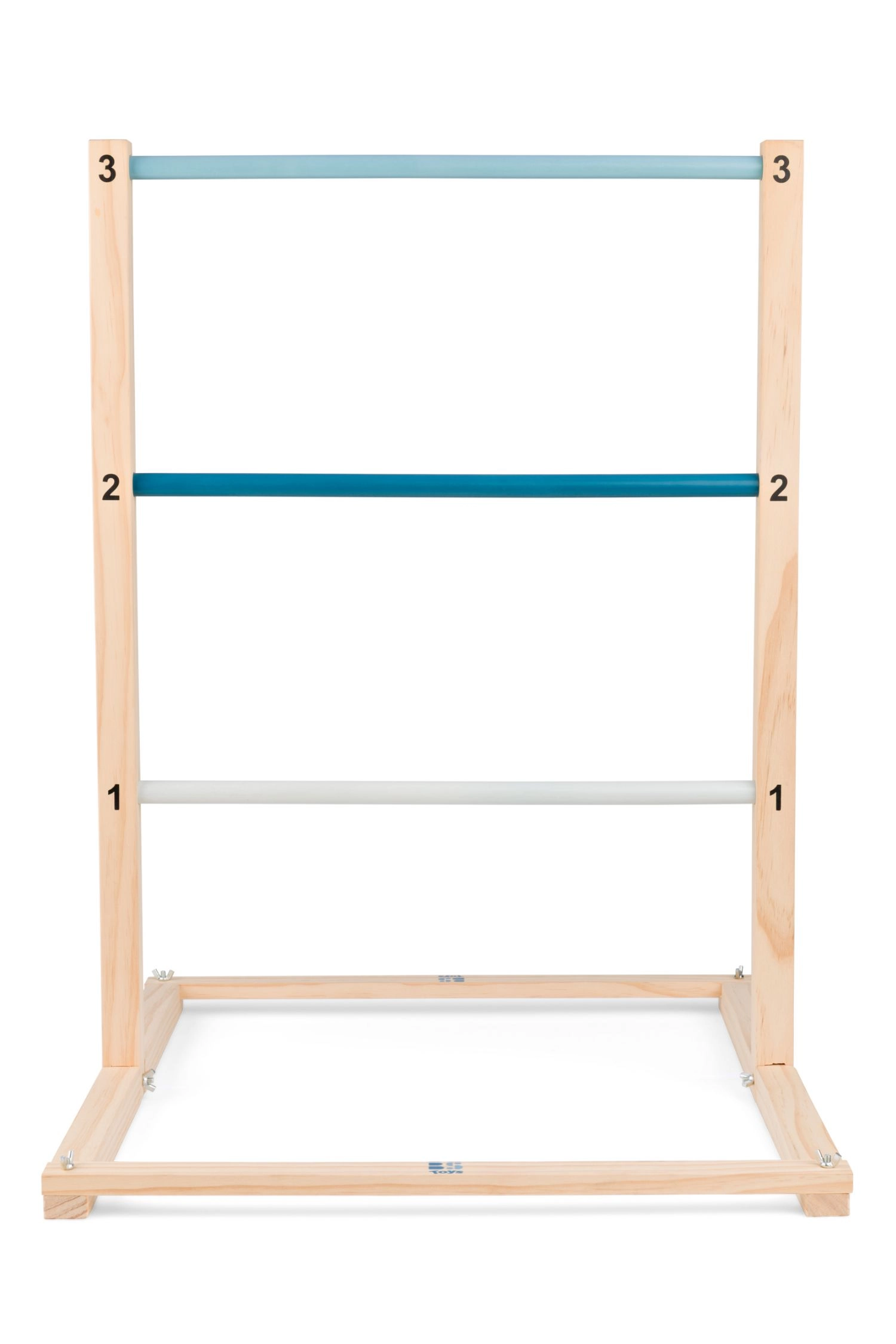 Táto drevená hádzacia hra 2 v 1 prináša dve obľúbené aktivity v jednom: klasickú rebríkovú hru s loptičkami a terč s otvormi na hody diskami. Stačí pripevniť látkový terč alebo ponechať priečky – a zábava sa môže začať. Skvelé na rozvoj koordinácie ruka–oko, presnosti a tímovej spolupráce.