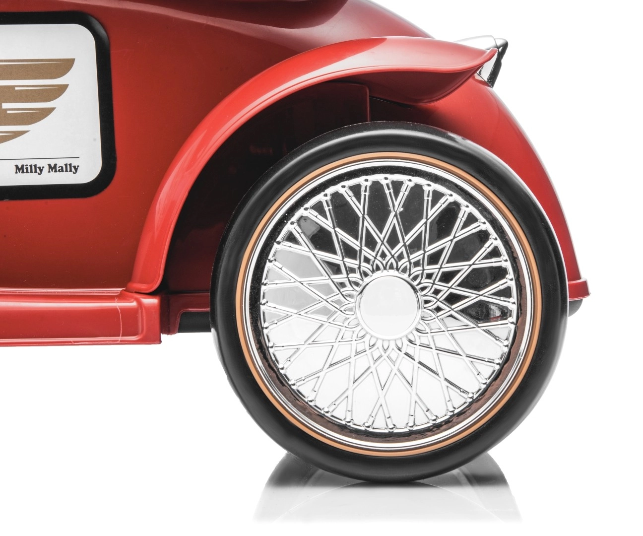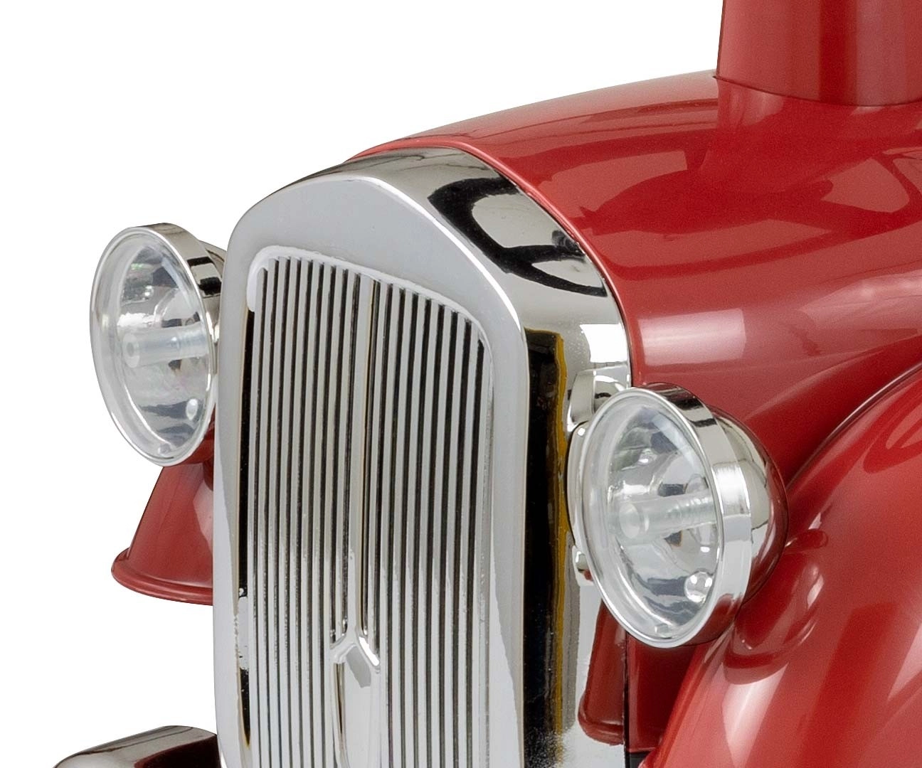 Lesklá predná maska, dekoračné svetlomety a elegantné línie vdýchnu odrážadlu klasický automobilový štýl.