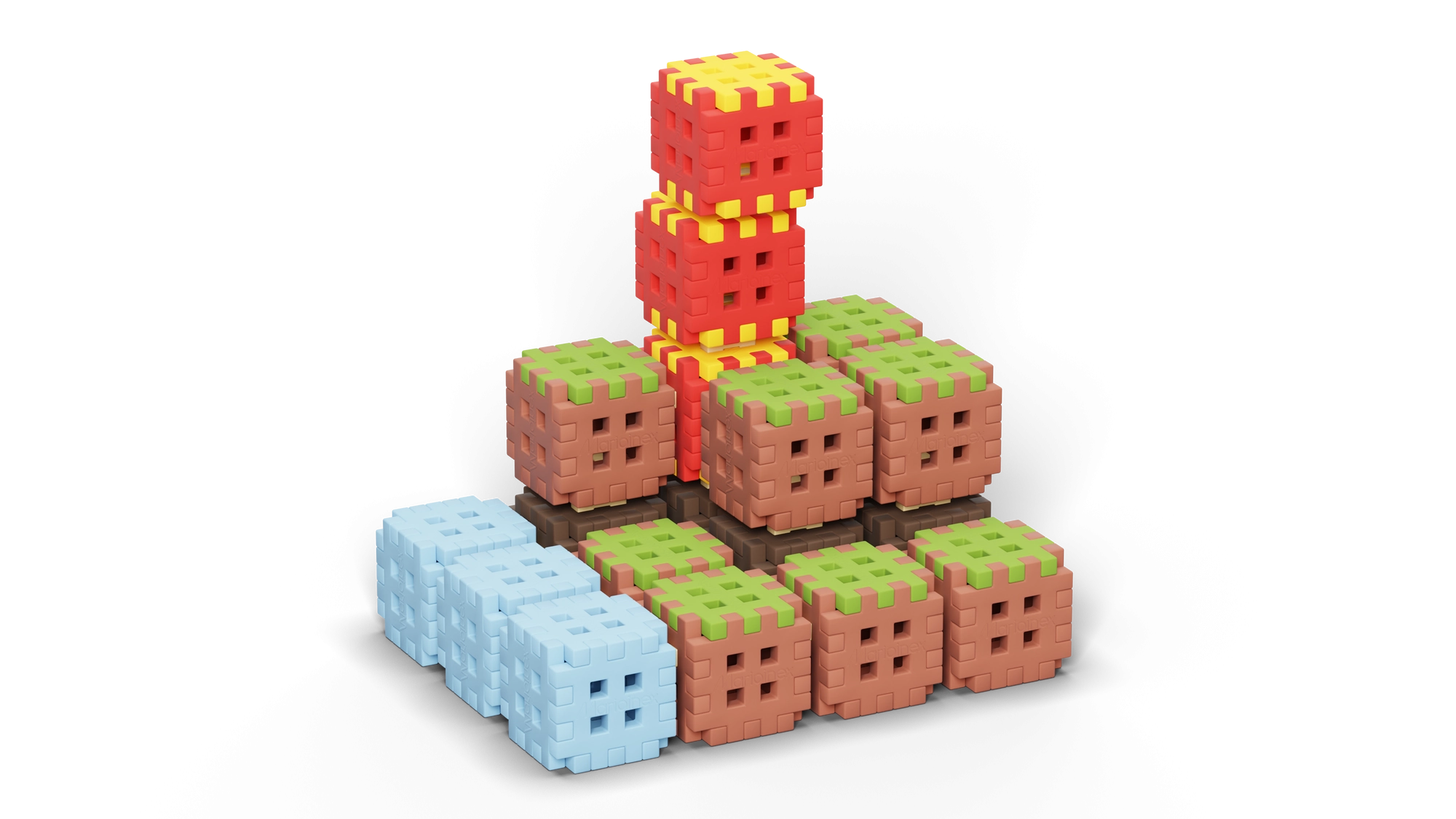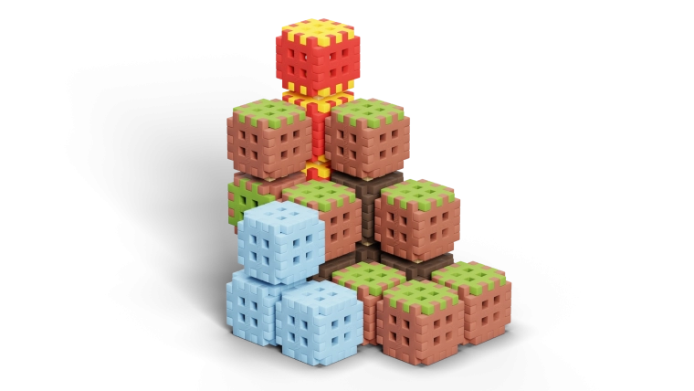 Kocky s viacstrannými zámkami umožňujú pevné spojenie zo všetkých strán. Stavajte terén, veže aj schodovité štruktúry a kedykoľvek ich prerobte podľa fantázie.