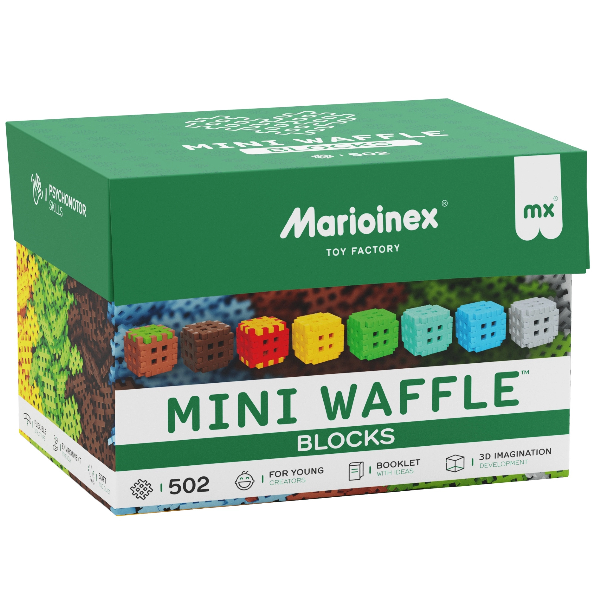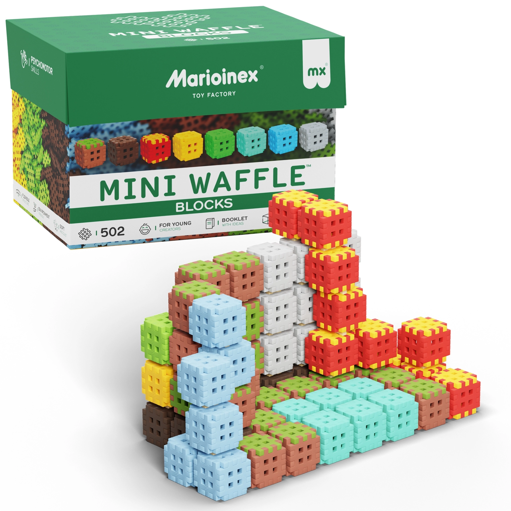 Veľká sada 502 dielikov ponúka nekonečné nápady na stavanie – od veží a stromov po originálne 3D tvary. Mäkký, príjemný materiál je šetrný k detským rukám a dieliky sa vďaka chytrému tvaru ľahko spájajú a rozdeľujú. Sada je kompatibilná s ďalšími stavebnicami Mini Waffle, takže vaše stavby môžu rásť spolu s fantáziou dieťaťa.