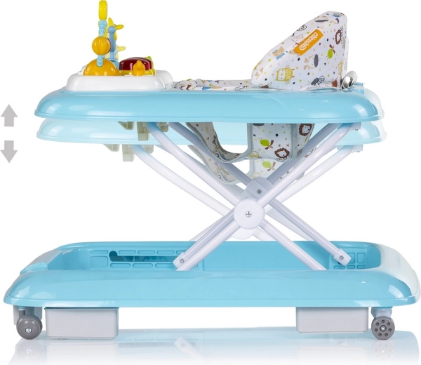 Interaktívne chodítko Chipolino Baby Steps v modrej farbe podporí prvé krôčiky vášho bábätka a premení ich na bezpečnú a zábavnú aktivitu. Ponúka nastaviteľnú výšku v 3 polohách, mäkké sedadlo s vysokou opierkou a zábavný panel s melódiami, svetlami a tlačidlami na rozvoj zmyslov a jemnej motoriky. Stabilná konštrukcia, 6 protišmykových zarážok a 4 kolieska (2 otočné 360°) zaistia istotu pri každom kroku.