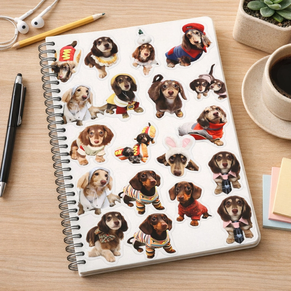 Vneste do svojich projektov hravosť a osobitosť. Táto pestrá kolekcia ponúka psíkov so španielskym vzhľadom v štýlových oblečkoch, čiapkach aj prirodzených pózach. Vďaka kompaktnej veľkosti sa samolepky skvele hodia na stránky denníkov, plánovačov, fotoalbumov aj na dekorovanie techniky.