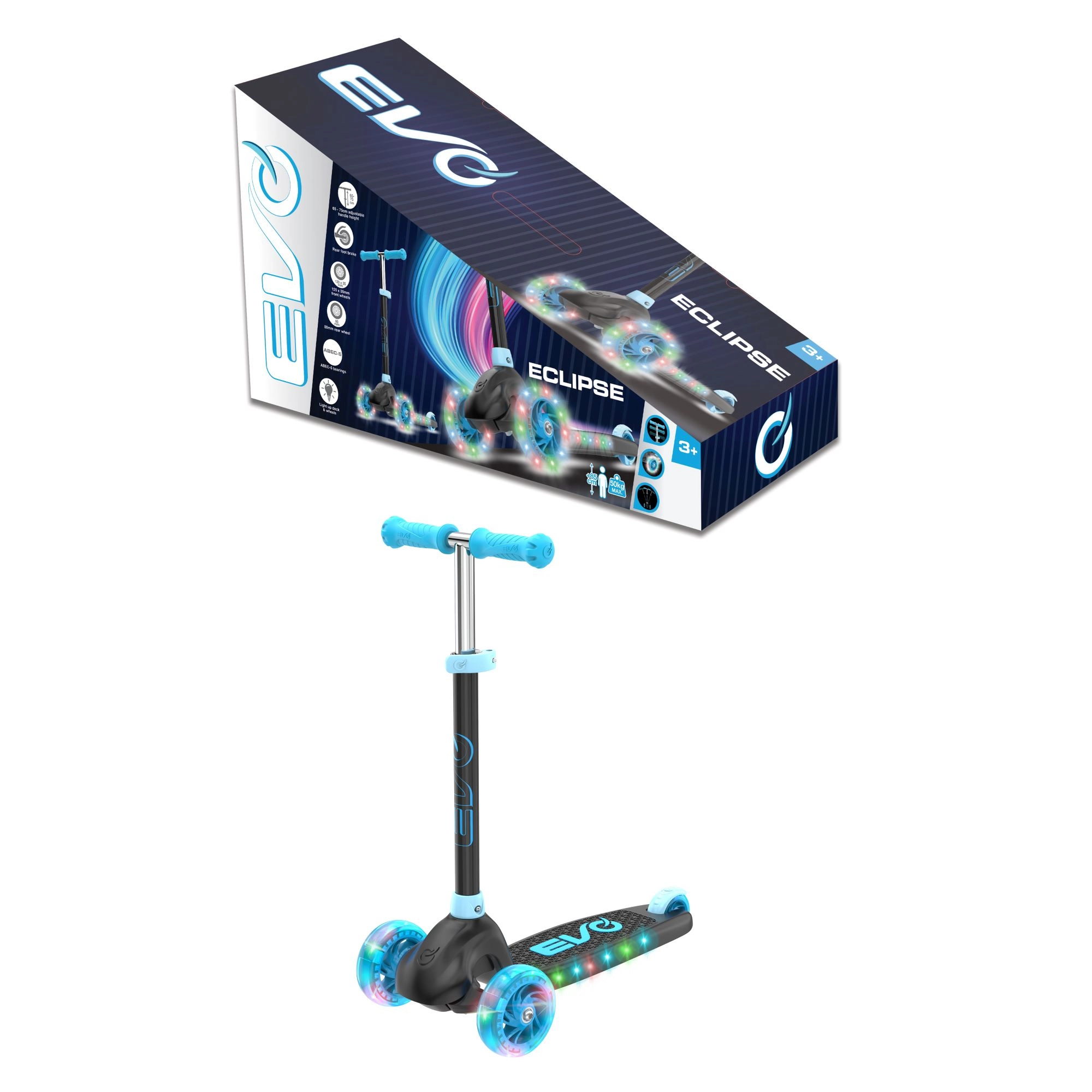 Detská trojkolesová kolobežka EVO Eclipse prináša stabilnú a zábavnú jazdu pre malých jazdcov už od 3 rokov. Vďaka dvom predným kolesám, nastaviteľnej výške riadidiel a svietiacim kolesám aj podeste si deti bezpečne užijú každú vychádzku, zatiaľ čo rozvíjajú rovnováhu a koordinačné zručnosti.