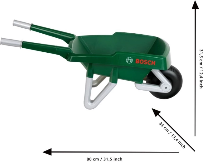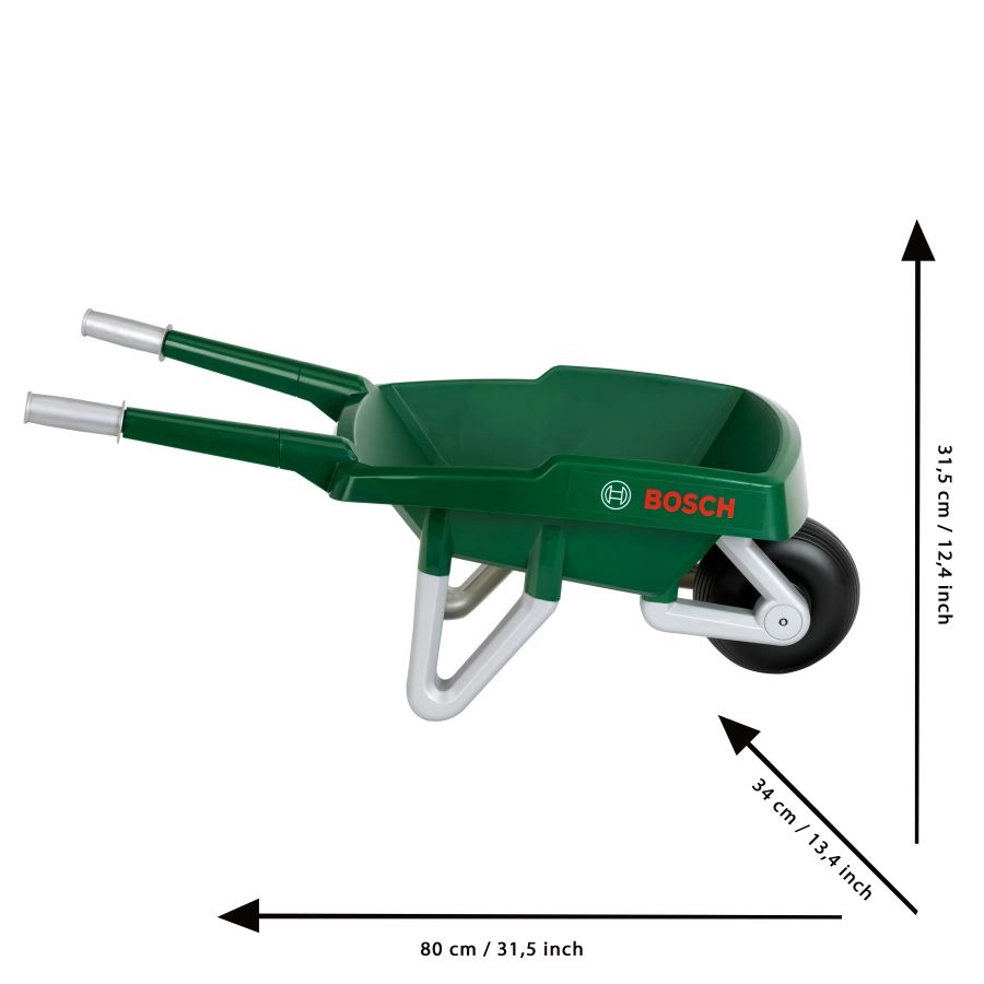 Ľahký a odolný detský fúrik s licenciou BOSCH od značky Klein poteší malých záhradníkov. Plastová korba v tmavozelenej farbe, stabilné koleso, dvojité oporné nohy a pohodlné rukoväti pre jednoduché ovládanie. Ideálny na prenášanie lístia, piesku či hračiek na záhrade.