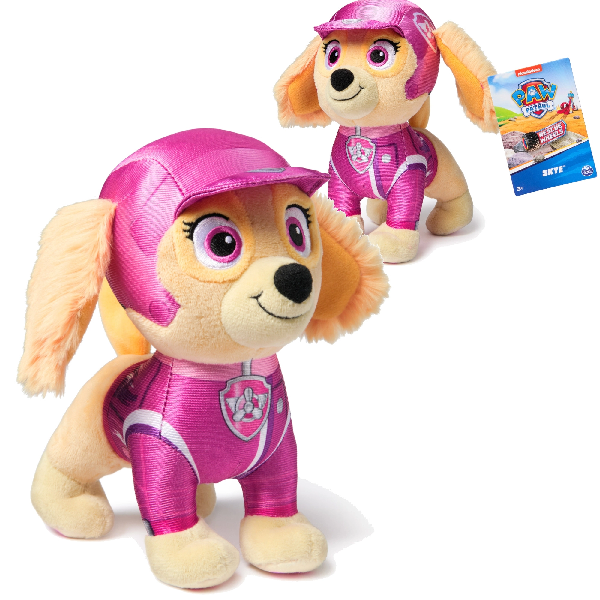 Vezmite si domov odvážnu Skye a vyrazte na napínavé záchranné misie! Táto oficiálna plyšová postavička z PAW Patrol verne zachytáva obľúbenú hrdinku v outfite Rescue Wheels s lesklou helmou a výraznými vyšívanými detailmi. Vďaka jemnému, mäkkému plyšu je skvelá na upokojujúce objatia aj každodenné hranie.
