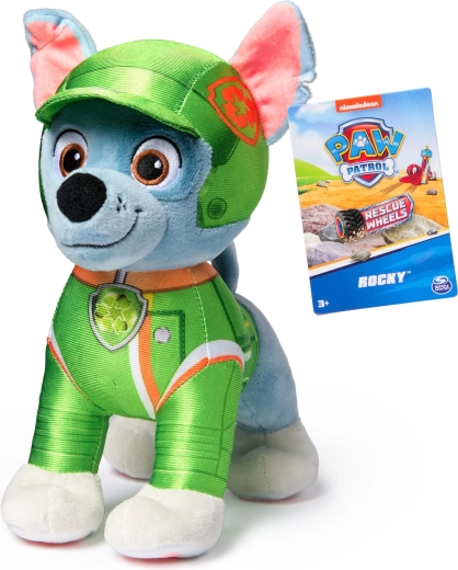 Pripravte sa na záchranárske misie s Rockym z PAW Patrol! Tento kvalitný plyšák v lesklej zelenej uniforme Rescue Wheels s prilbou a odznakom verne zachytáva obľúbeného hrdinu. Mäkučké prevedenie a bezpečné vyšívané detaily zaručia pohodlné túlenie aj bezpečnú hru.
