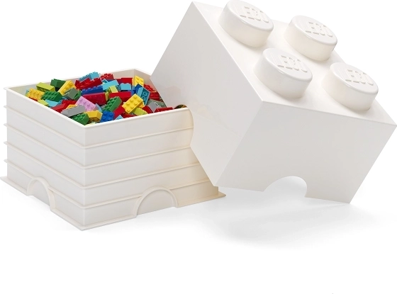 Dizajnový úložný box inšpirovaný ikonickou LEGO kockou prináša radosť z upratovania aj poriadok do detskej izby. Vďaka štyrom výrazným výstupkom na veku sa boxy medzi sebou bezpečne stohujú a vytvárajú zábavné a praktické úložné riešenie. Biela farba sa ľahko kombinuje s ostatnými odtieňmi a zapadne do každého interiéru.