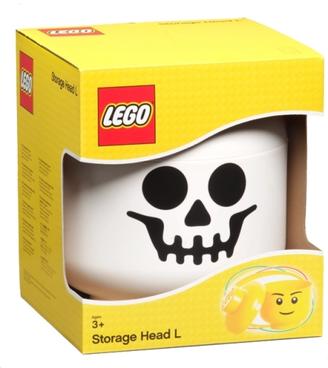 Udržte poriadok štýlovo s úložnou hlavou LEGO vo veľkosti L s originálnou potlačou kostlivca. Tento ľahký a pritom odolný box je ideálny na ukladanie LEGO kociek, menších hračiek, kreatívnych pomôcok alebo dobrôt. Vďaka ikonickému tvaru LEGO studu na veku pôsobí ako dizajnový doplnok, ktorý vynikne v každej detskej izbe.