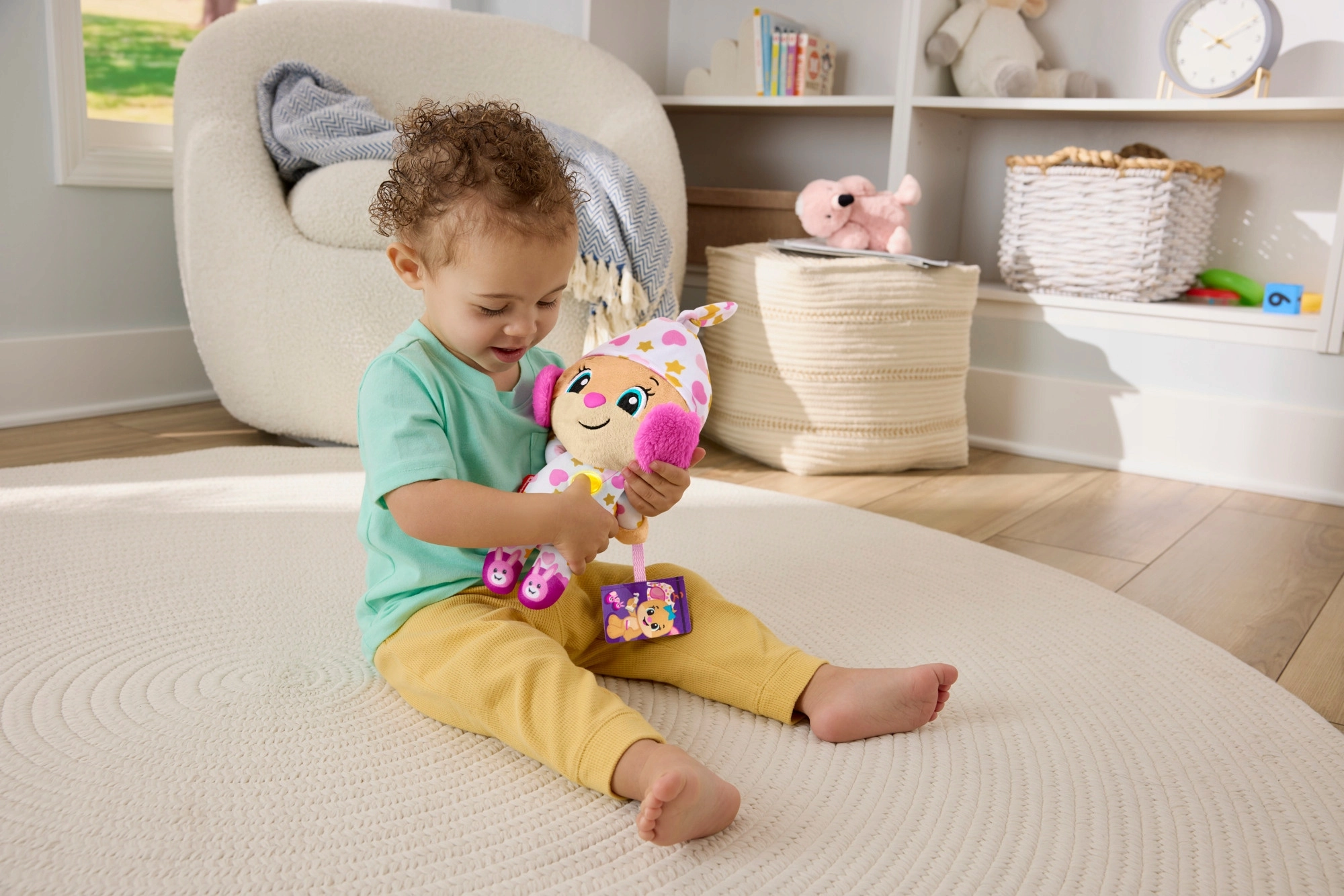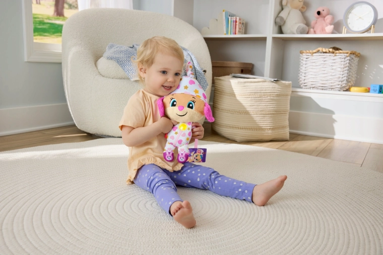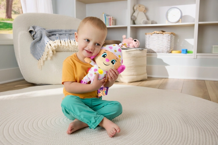 Interaktívna plyšová hračka Uč sa a smej! je ideálnym kamarátom na večerné rituály aj pokojné chvíľky počas dňa. V pyžamku s hravými vzormi a so svietiacim srdiečkom vytvára príjemnú atmosféru na utíšenie, relax a zaspávanie.