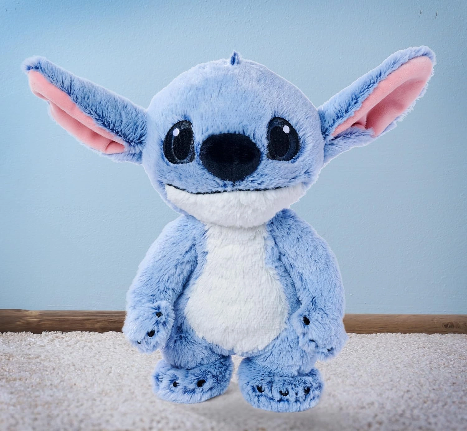 Stitch je vyrobený z mimoriadne mäkkého materiálu príjemného na dotyk. Vyšívané oči a detaily zvyšujú bezpečnosť aj odolnosť pri každodennom hraní.