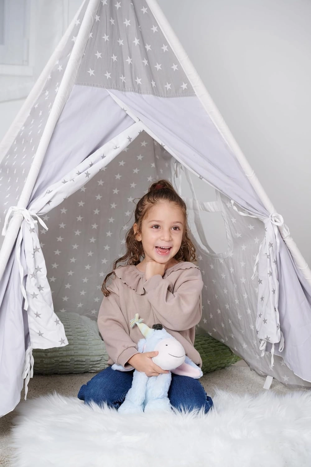Sediace prevedenie drží tvar, takže sa hodí na poličku, do čitateľského kútika aj do teepee. Krásna dekorácia aj hračka v jednom.