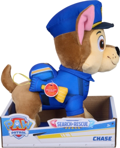 Obľúbený hrdina PAW PATROL v podobe mäkučkej plyšovej hračky! Plyšový Chase Search & Rescue s výškou 24 cm má modro‑žltú policajnú uniformu, záchranársky batôžtek a pripnutú mäkkú „baterku“ pre ešte realistickejšie hranie. Vyrobený z jemného hnedého plyšu s vyšívanými detailmi – ideálny na maznanie aj dobrodružné misie.