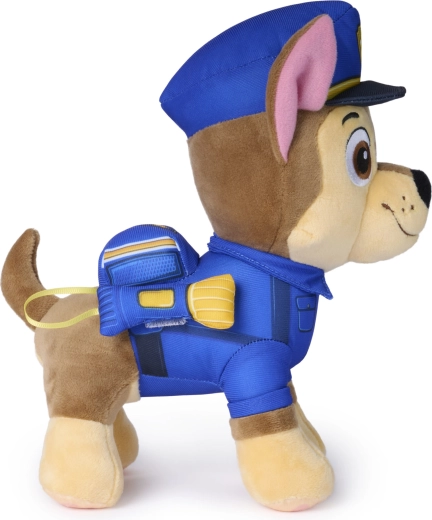 Chase má svoju typickú modro‑žltú policajnú uniformu a čiapku s odznakom – presne ako v seriáli. Deti okamžite spoznajú svojho obľúbeného psíka.