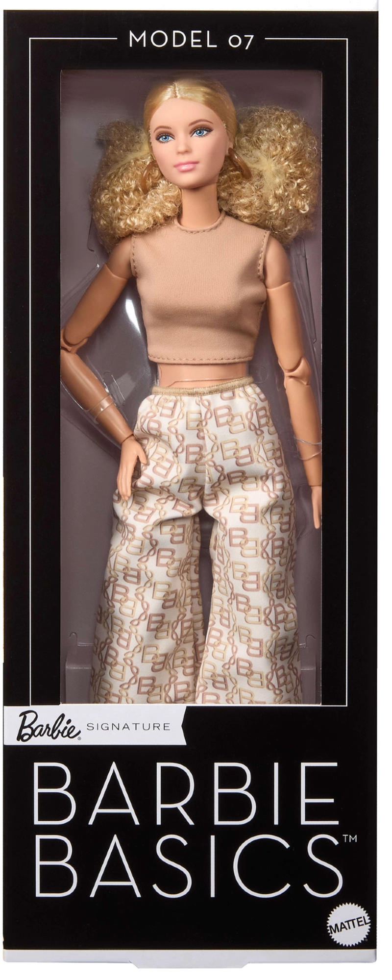 Bábika BARBIE Signature Basics Model 07 oslavuje minimalizmus a modernú eleganciu. Jemná tvár s modrými očami, delikátnym líčením a svetlou pleťou podčiarkuje jej klasickú krásu. Blond kučeravé vlasy sú upravené do jednoduchého účesu, ktorý ladí s čistou estetikou celej série.