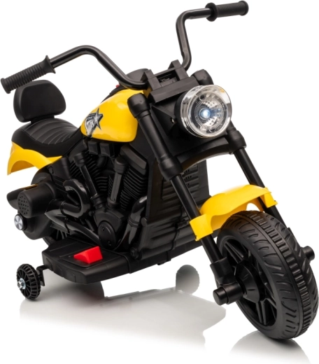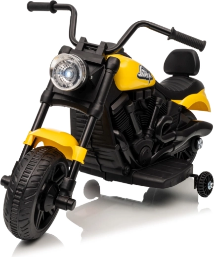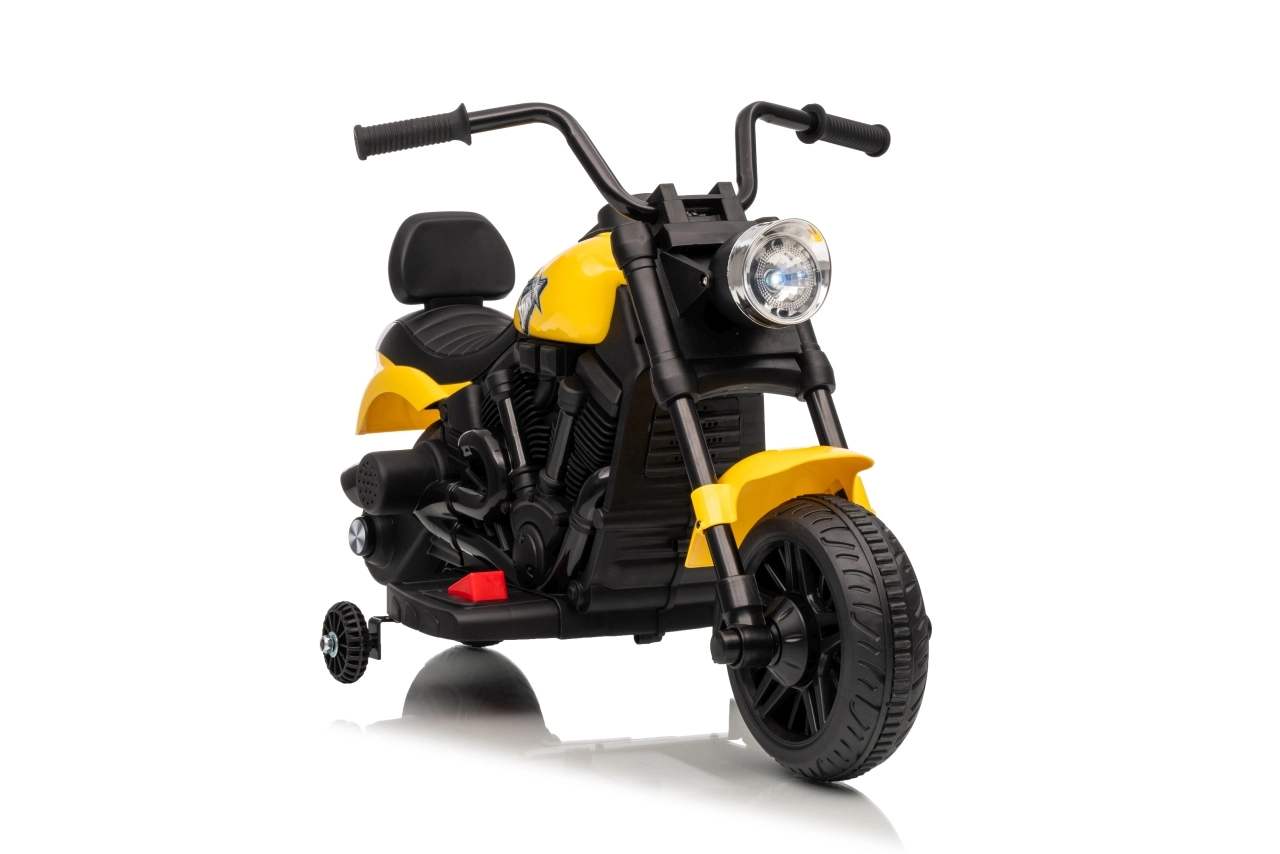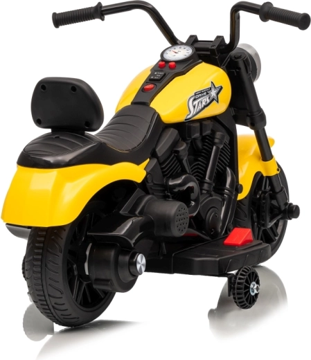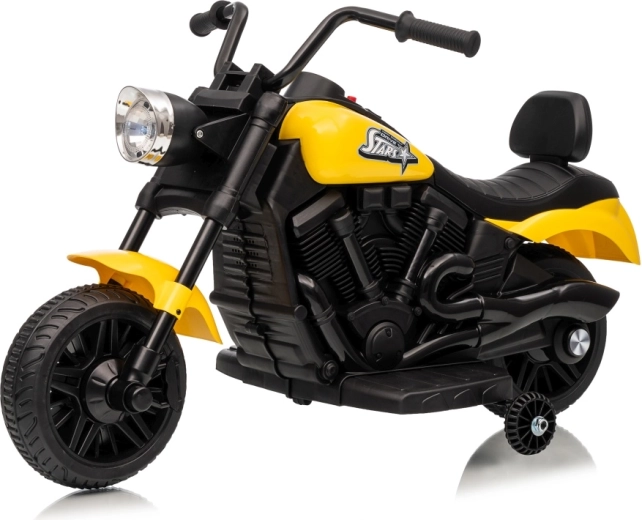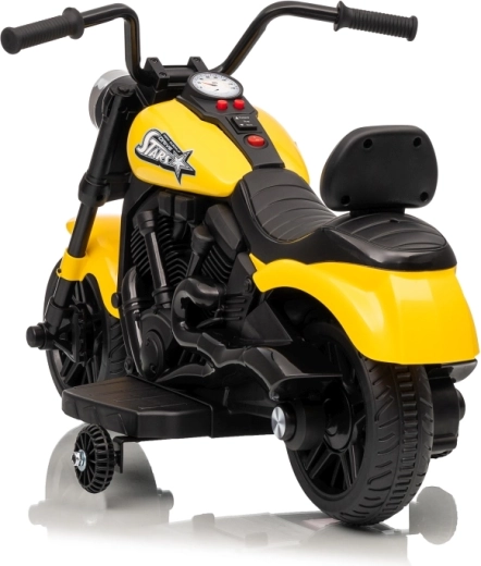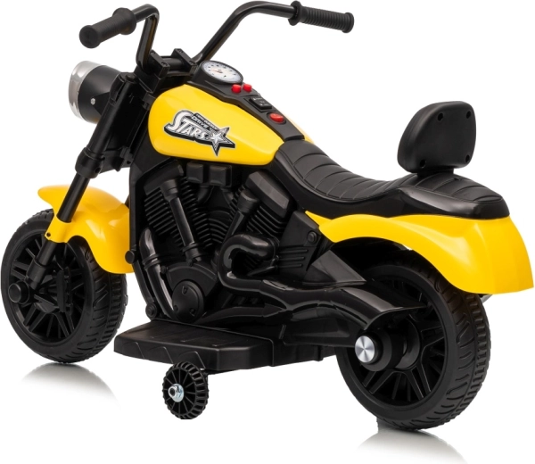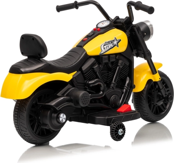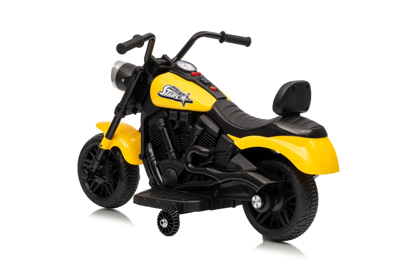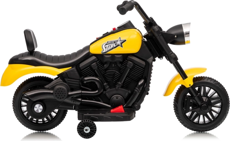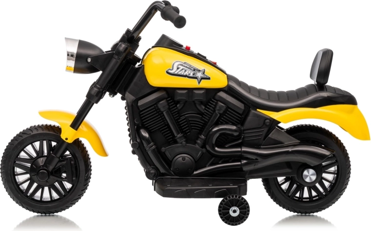 Štýlová detská elektrická motorka STAR v žltej farbe prináša bezpečnú zábavu pre malých jazdcov. Vďaka pomalému štartu, stabilizačným bočným kolieskam a prednému LED svetlu je jazda pohodlná a bezpečná. Motorka ponúka jazdu vpred aj vzad, jednoduché tlačidlové štartovanie a zvukový panel s melódiami pre ešte väčšiu radosť z jazdy.