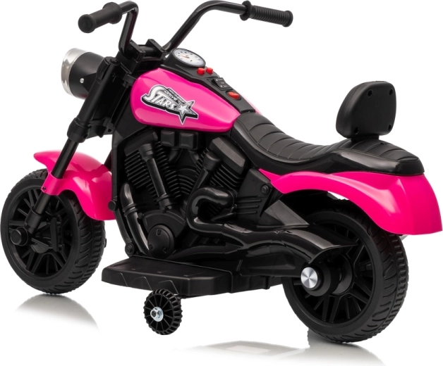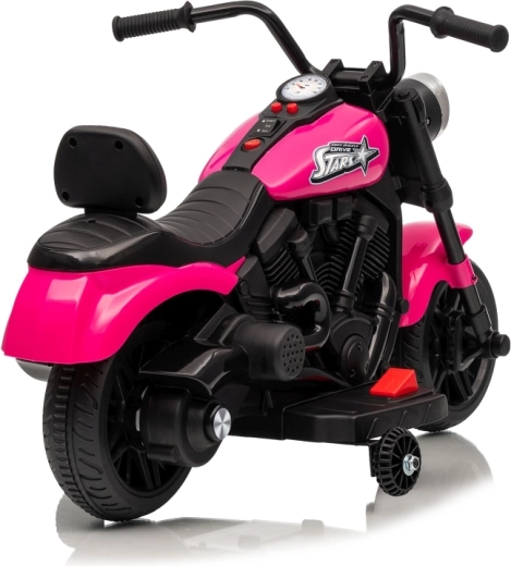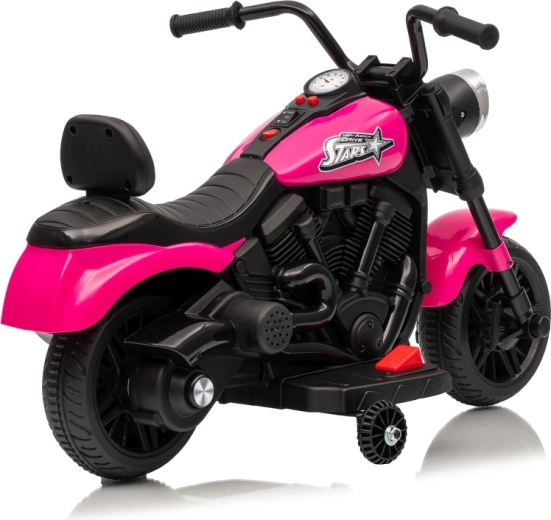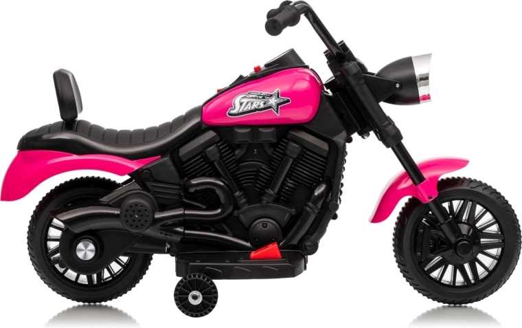Ružová detská elektrická motorka STAR ponúka bezpečnú jazdu s bočnými kolieskami, pohodlným sedlom a predným LED svetlom. Vďaka plynulému rozjazdu, jazde dopredu aj dozadu a predinštalovaným melódiám je ideálna na rozvoj motoriky a sebavedomia malých jazdcov.