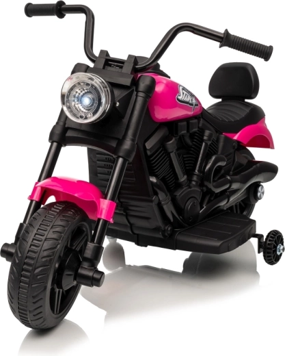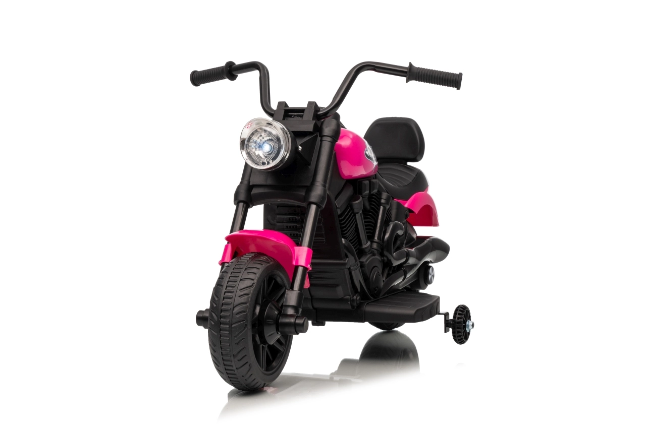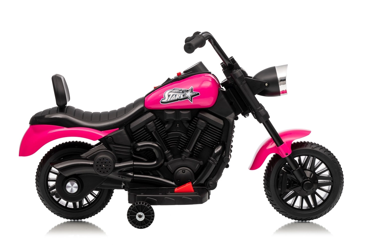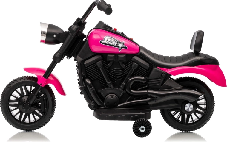 Doprajte deťom ich prvý motorkársky zážitok s elektrickou motorkou STAR v atraktívnej ružovo‑čiernej kombinácii. Stabilitu zabezpečujú pomocné bočné kolieska, široké plastové pneumatiky a pohodlné sedlo s operadlom. Predné LED svetlo dodáva realistický vzhľad a zvyšuje viditeľnosť.