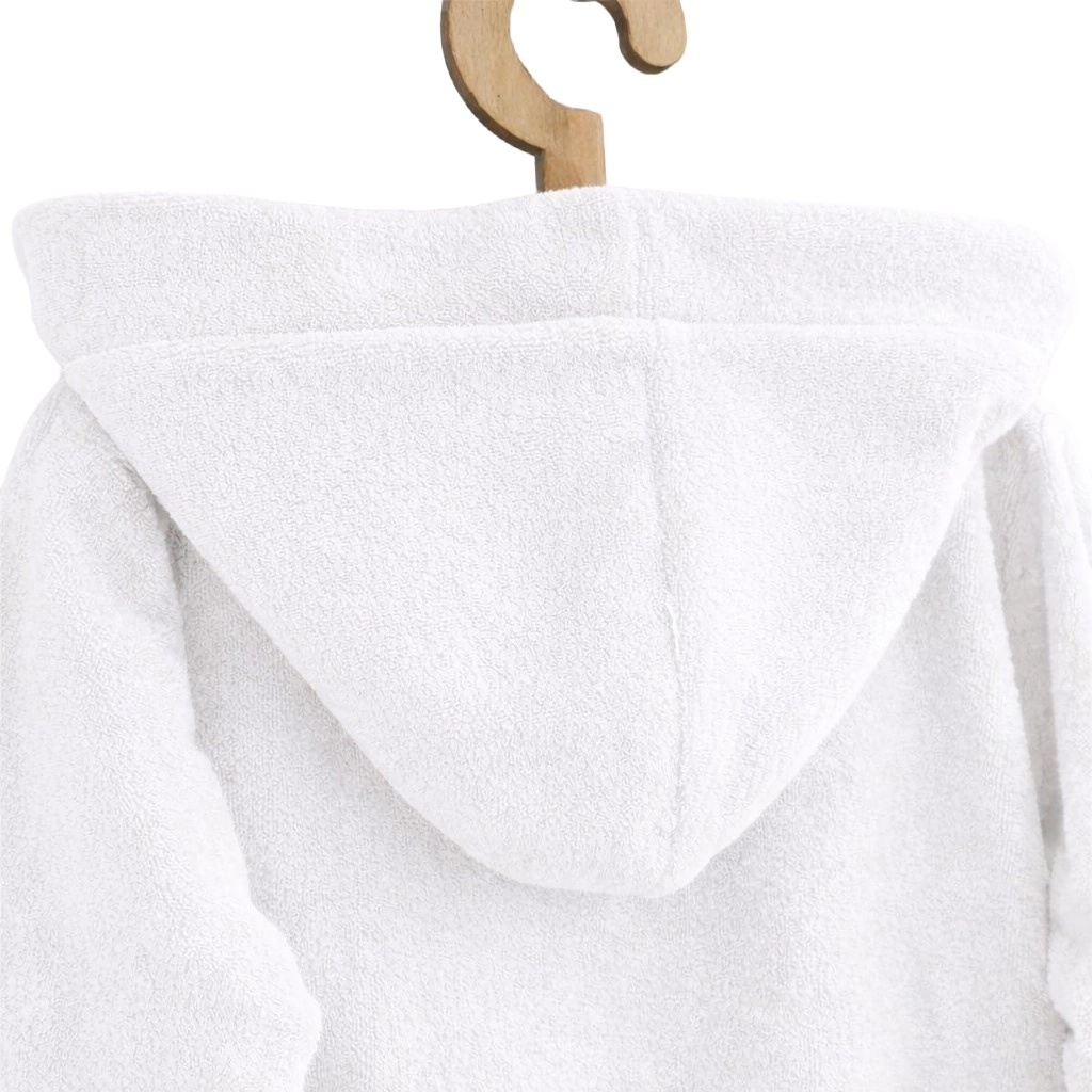 Mäkučký detský župan NEW BABY z kvalitného froté zaručí po kúpeli okamžité pohodlie a teplo. Vďaka savému 100% bavlnenému materiálu, praktickej kapucni a prišitému opasku zostávajú deti krásne v teple a nič sa nestráca. Hlbšie vrecká pojmú drobnosti, župan je ideálny po kúpeli doma, v bazéne aj pri mori.