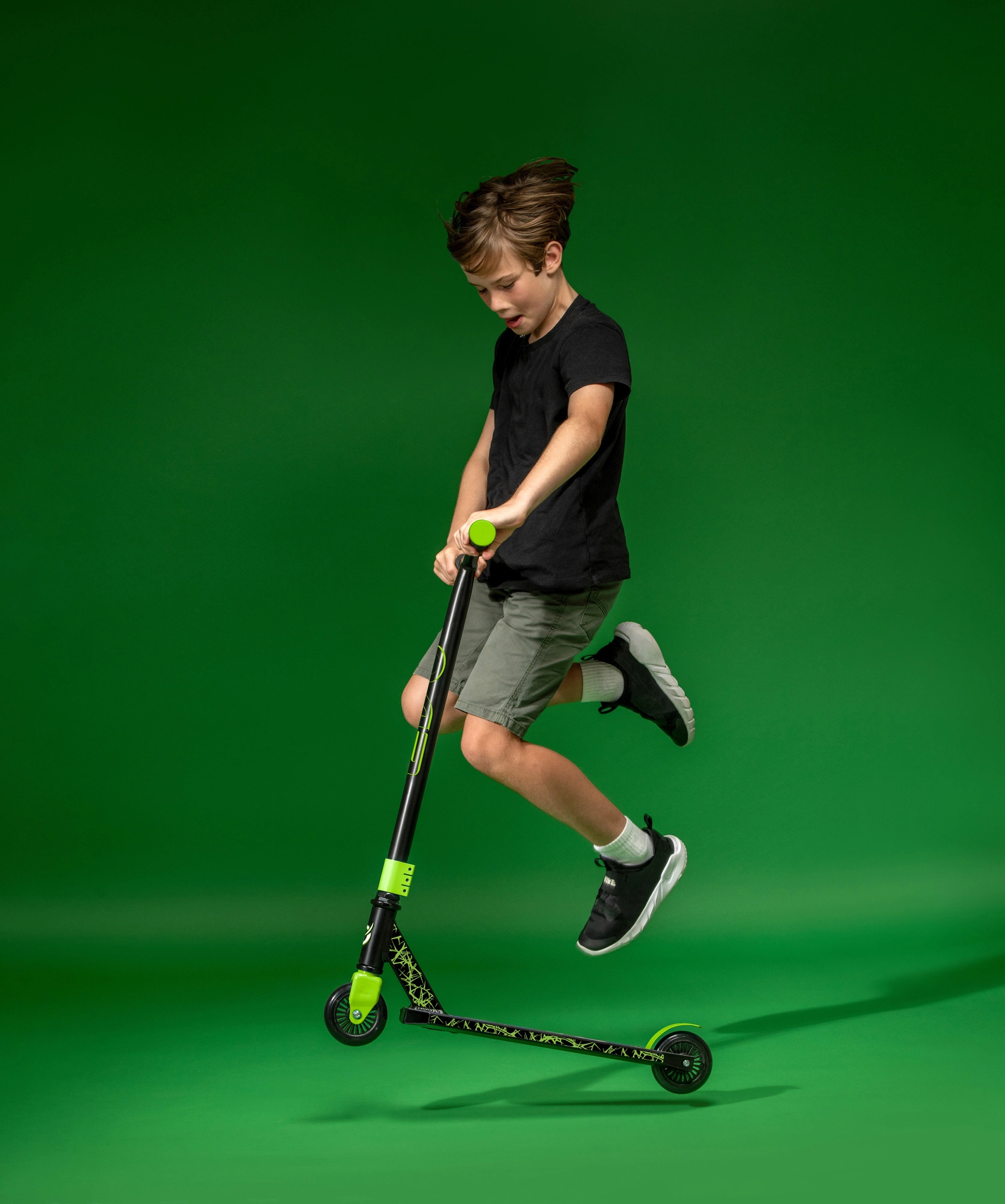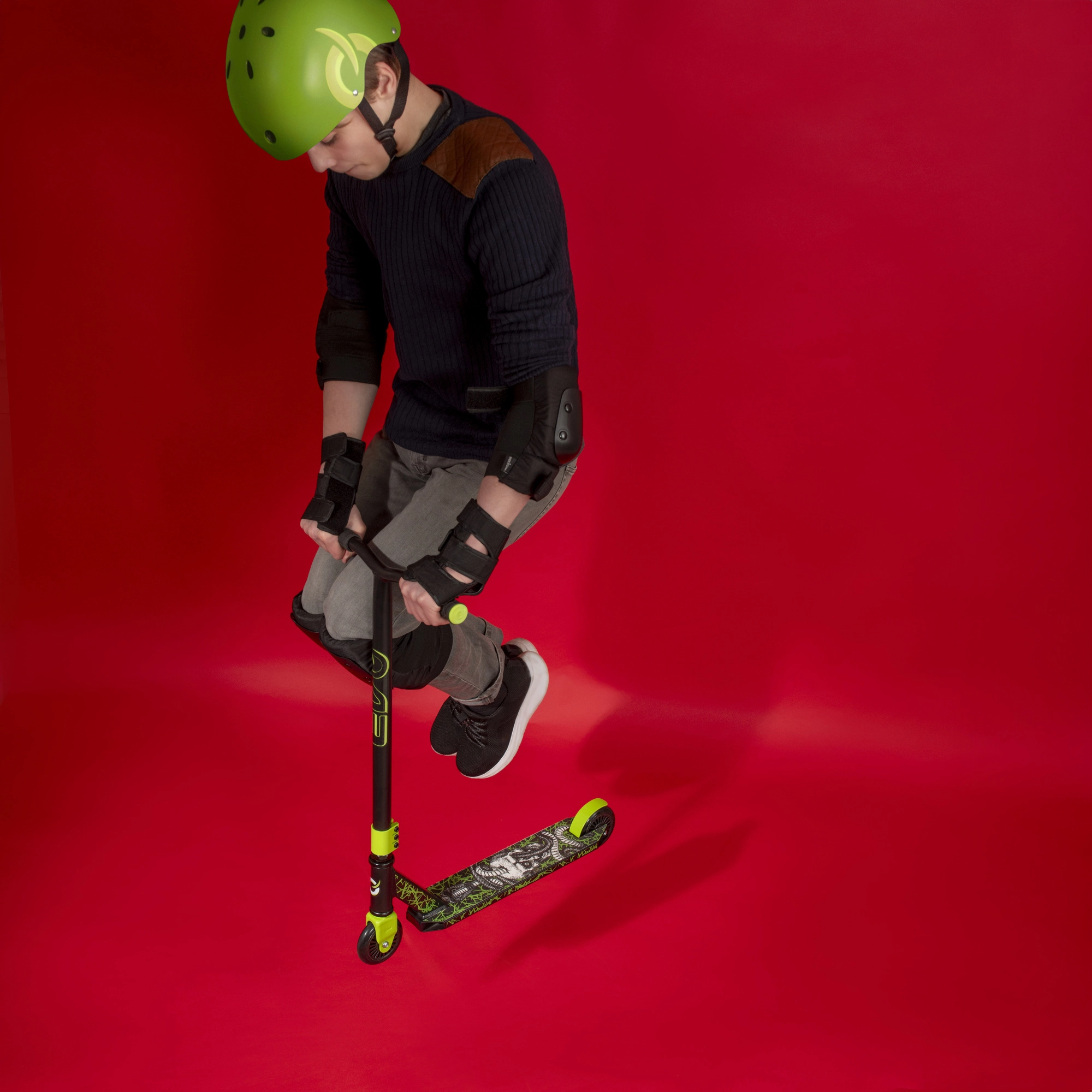 Model je navrhnutý pre malých jazdcov od 6 rokov – ponúka stabilitu, bezpečné ovládanie a možnosť skúšať jednoduché triky. Protišmyková doska s výraznou grafikou a odolné riadidlá T‑bar s nekĺzavými TPE gripmi pridávajú na komforte aj kontrole.