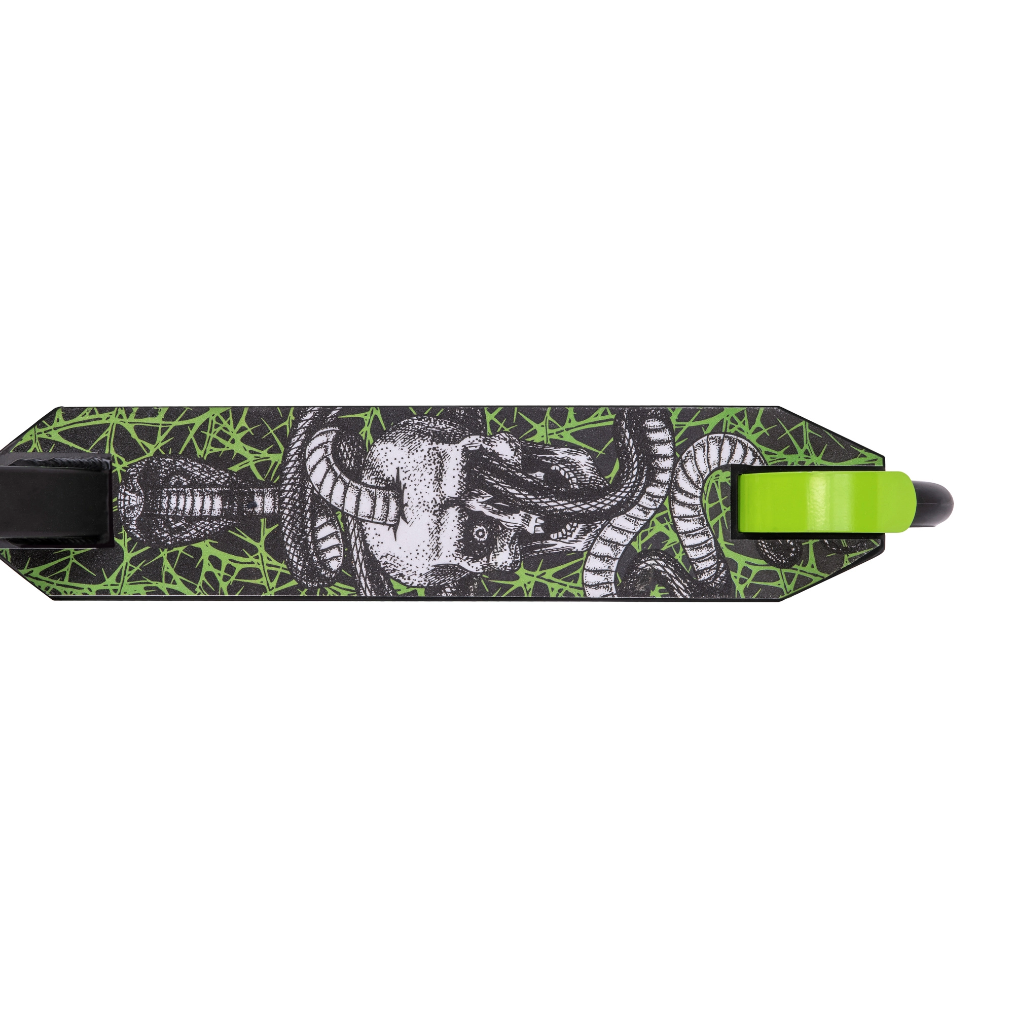 Spevnený deck s hrubým gripom a atraktívnym dizajnom pomáha udržať istý postoj a dodáva kolobežke športový vzhľad.