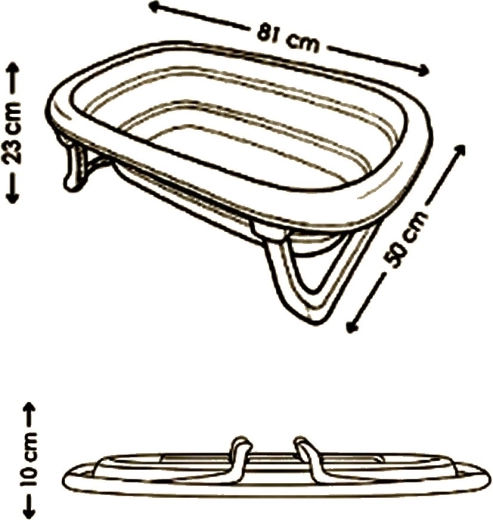 Vanička kombinuje pevnú polypropylénovú spodnú časť pre stabilitu s pružnou elastomérovou časťou pre jednoduché skladanie. Konštrukcia s vyklápacími nohami a zvýšenými okrajmi zabezpečuje pevné usadenie na rovnom povrchu. Produkt je dodávaný v kompaktnom balení, pripravenom na prepravu aj skladovanie.
