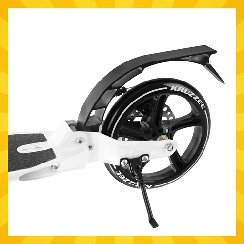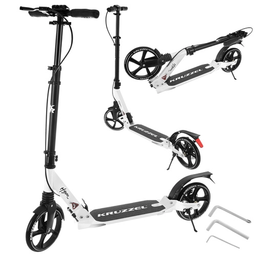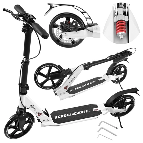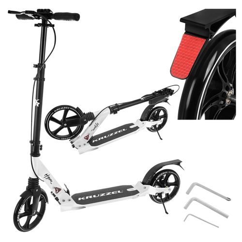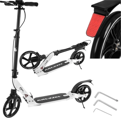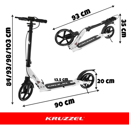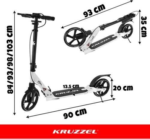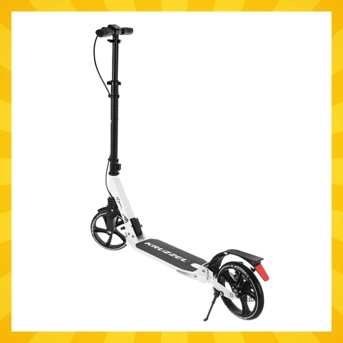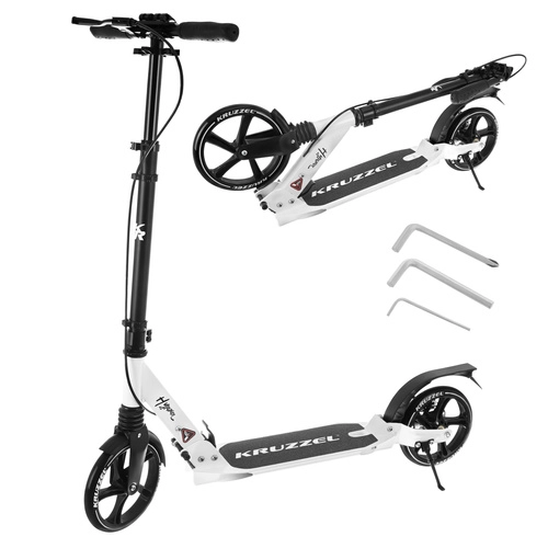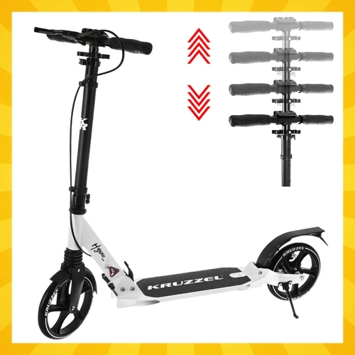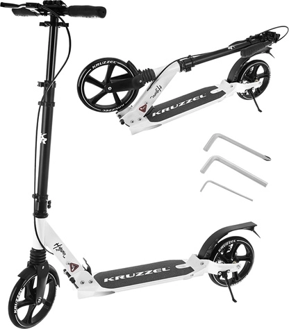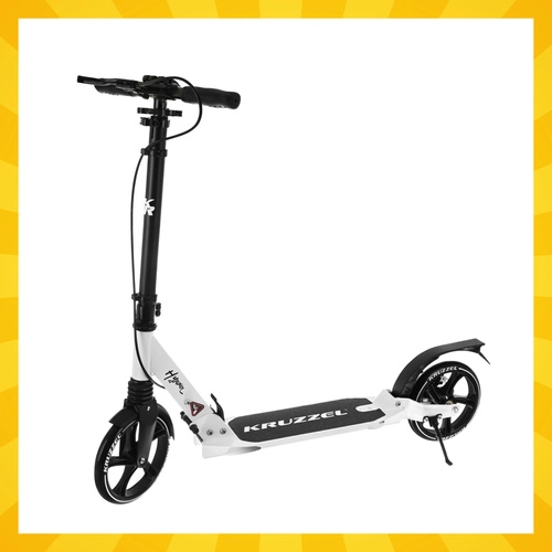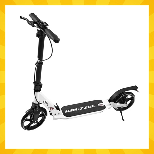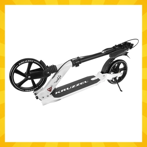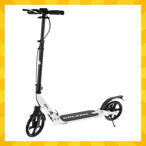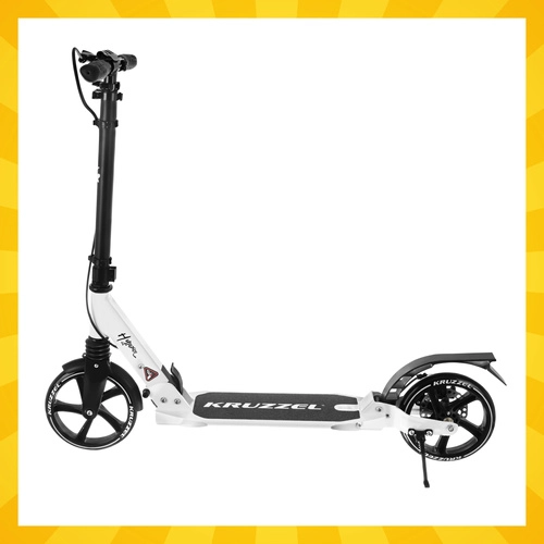 Prémiová skladacia kolobežka KRUZZEL Hyperion pre deti aj dospelých ponúka veľké 200 mm gumové kolesá, ložiská ABEC-9, dvojitý brzdový systém (ručný a nožný) a ľahký hliníkový rám. Vďaka rýchlemu skladaniu, odpruženiu a nastaviteľnej výške riadidiel je ideálna na pohodlné a bezpečné dochádzanie po chodníkoch a cyklotrasách.
